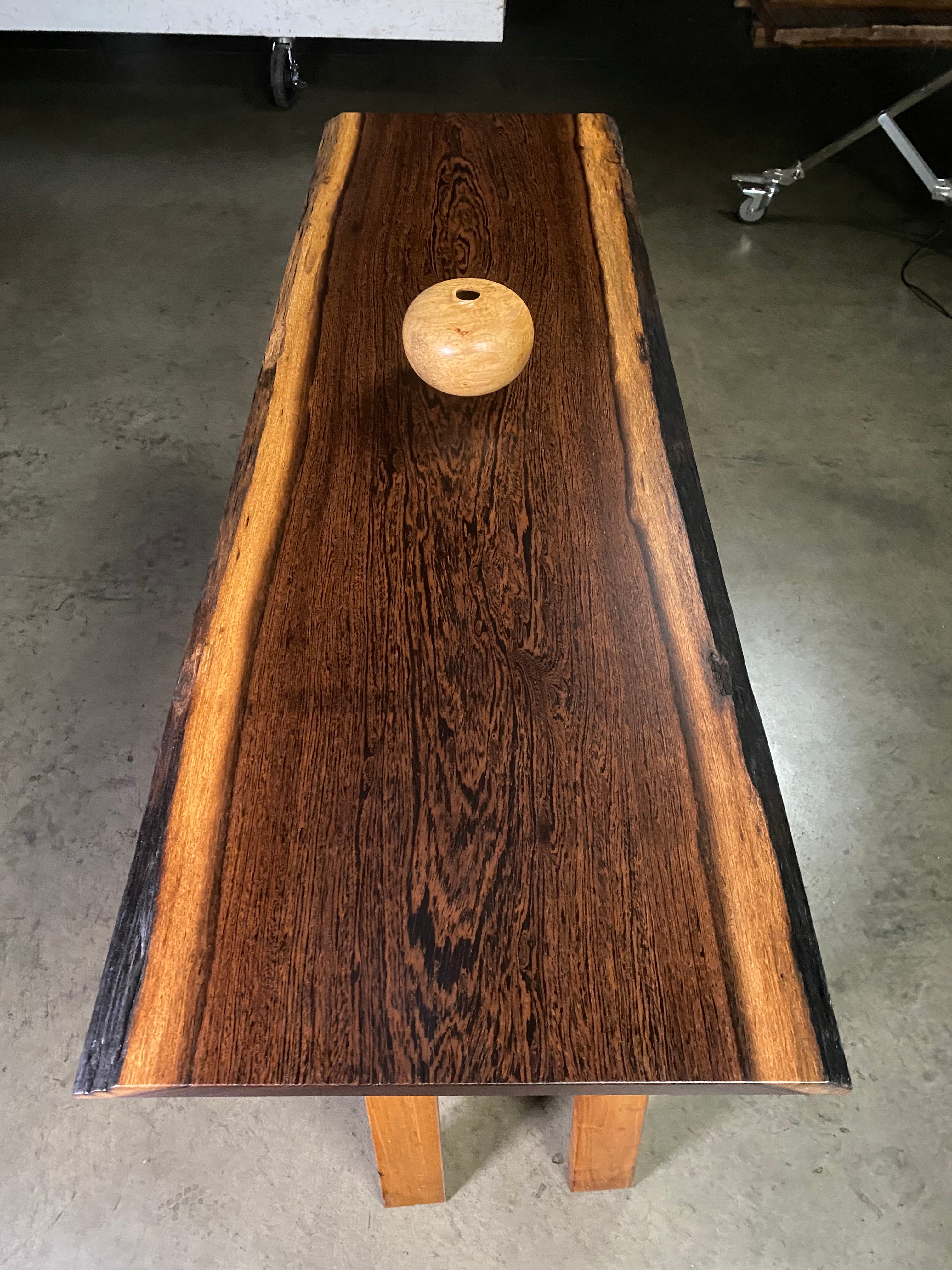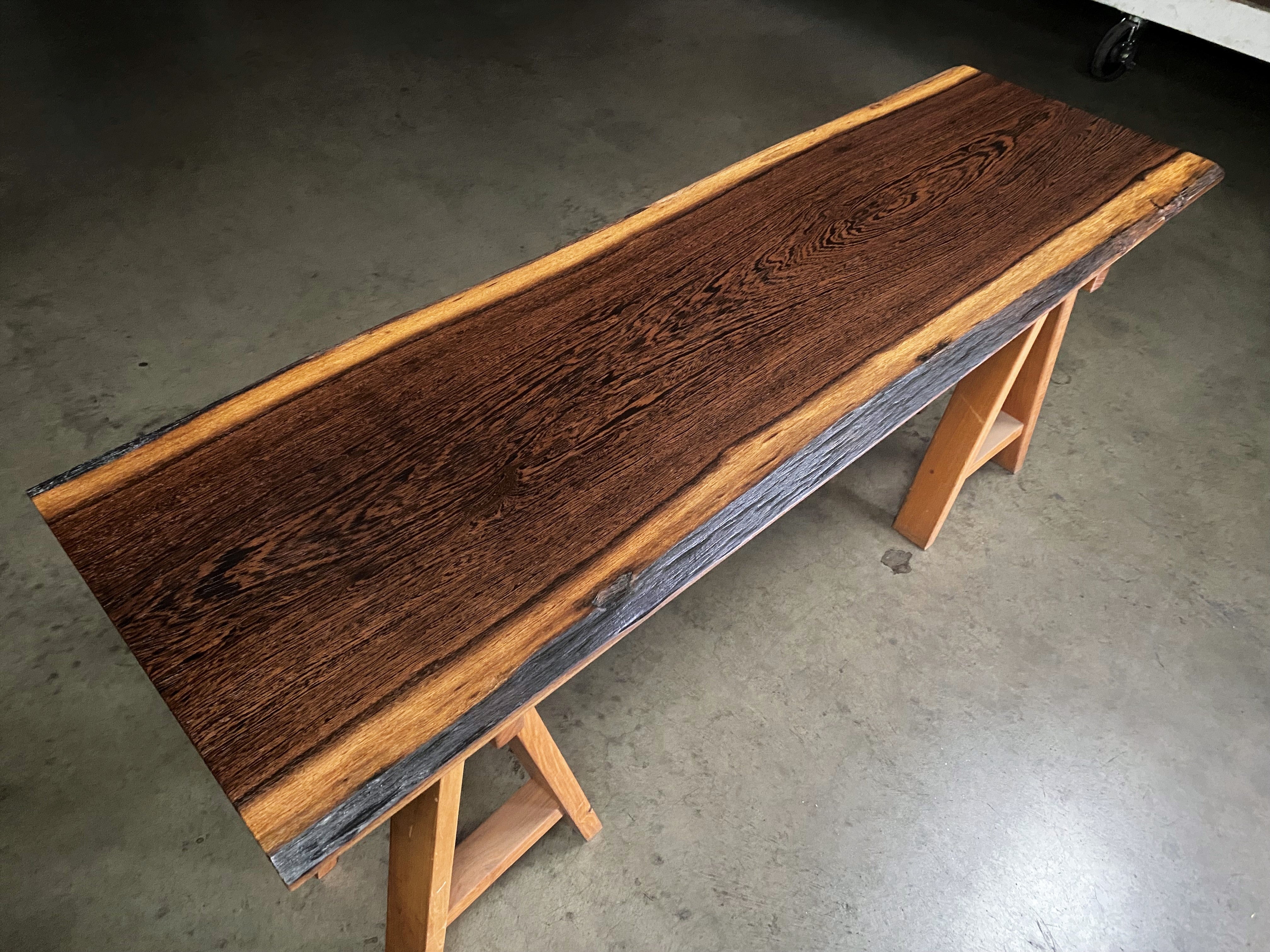 - Description: Slab top, live edge with some black fills. Great for coffee table or console table.