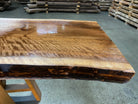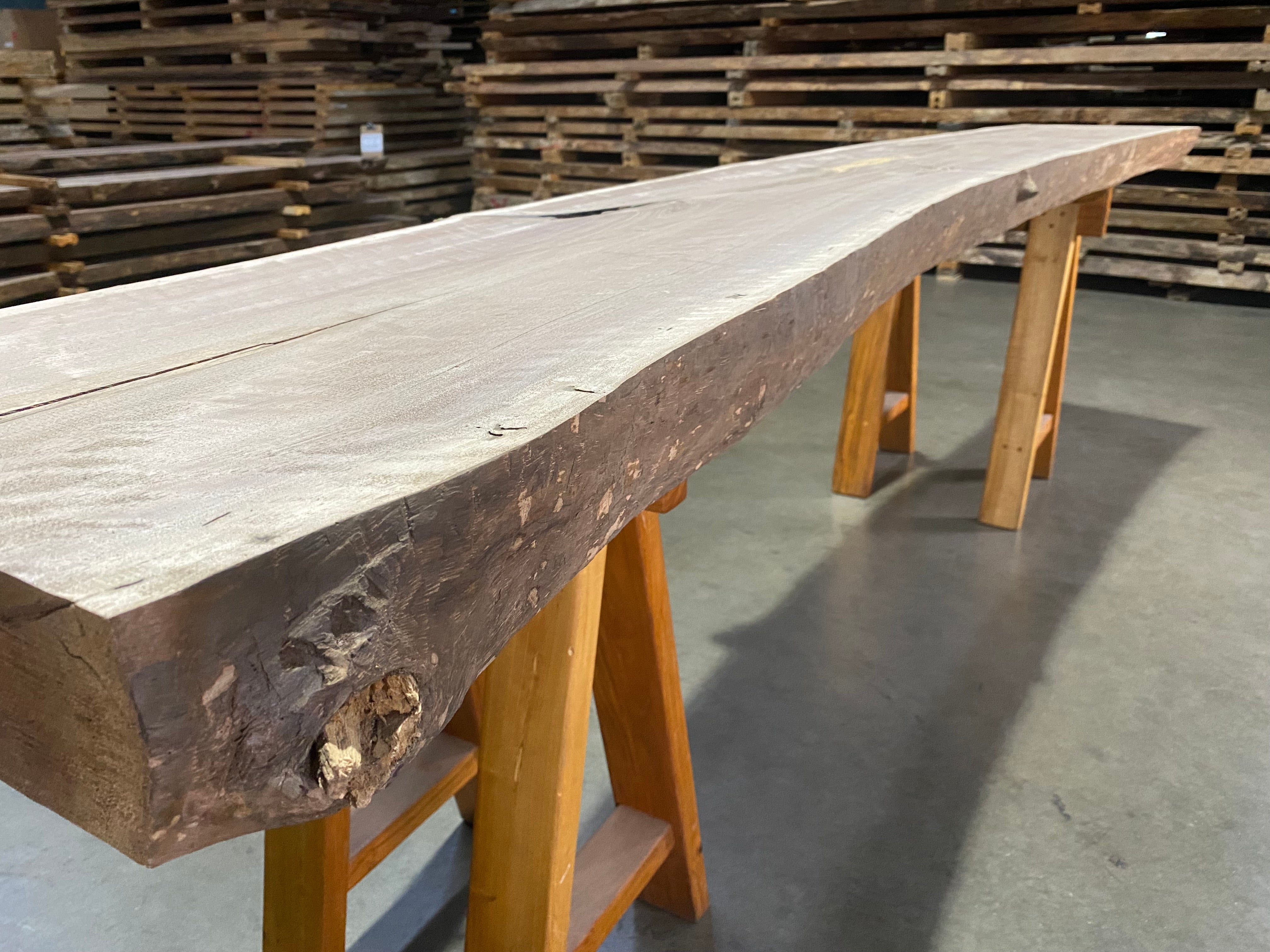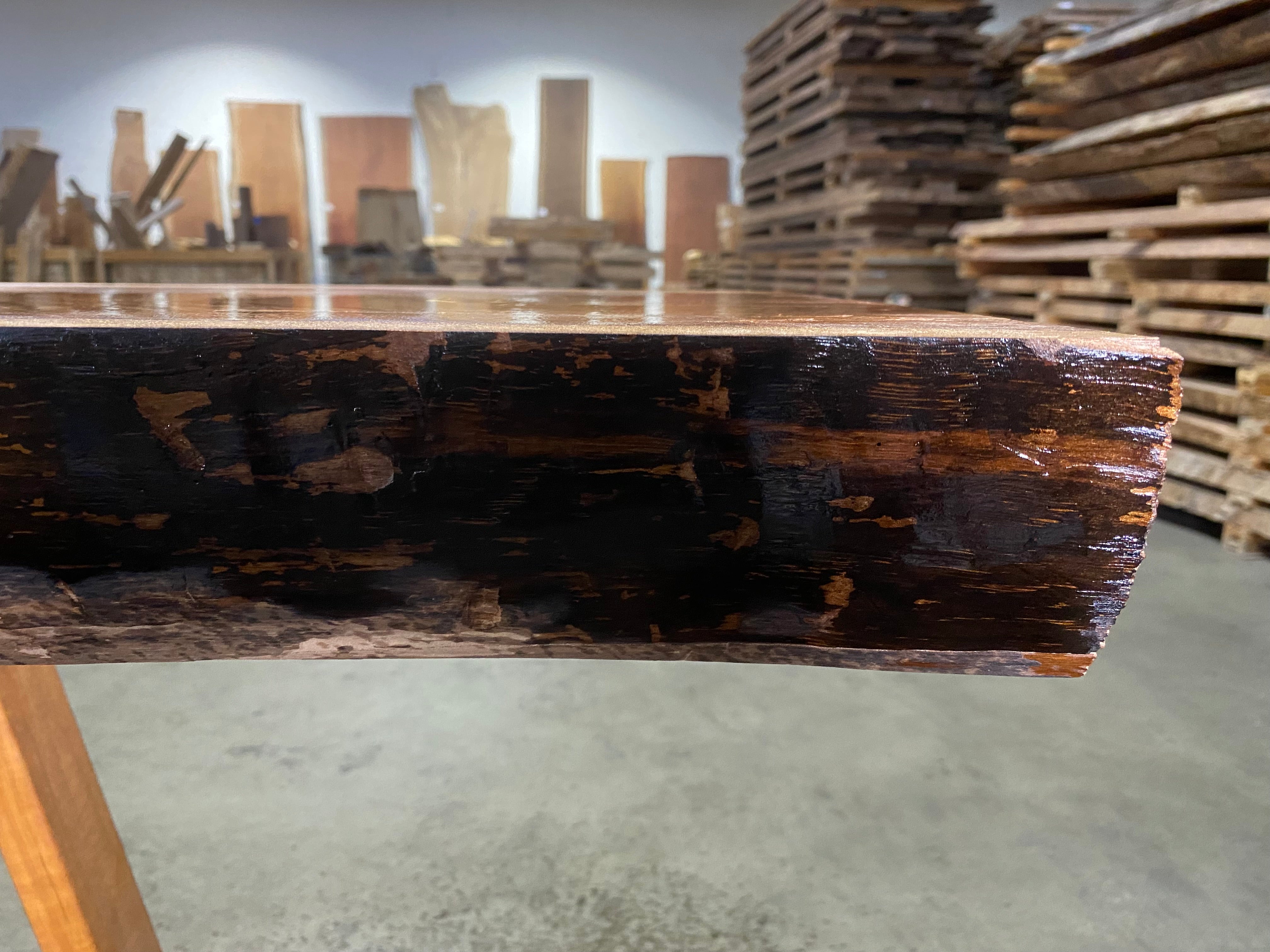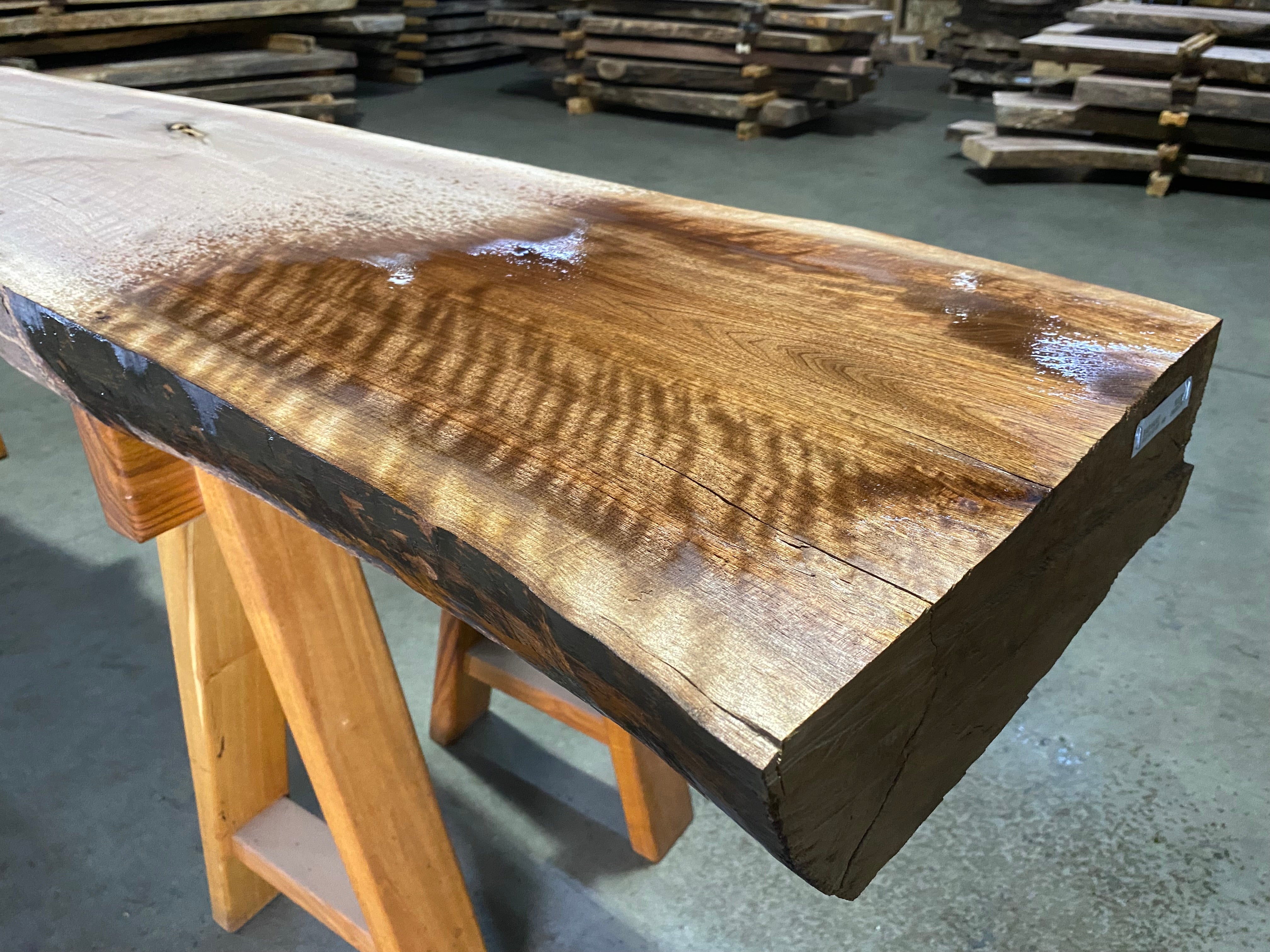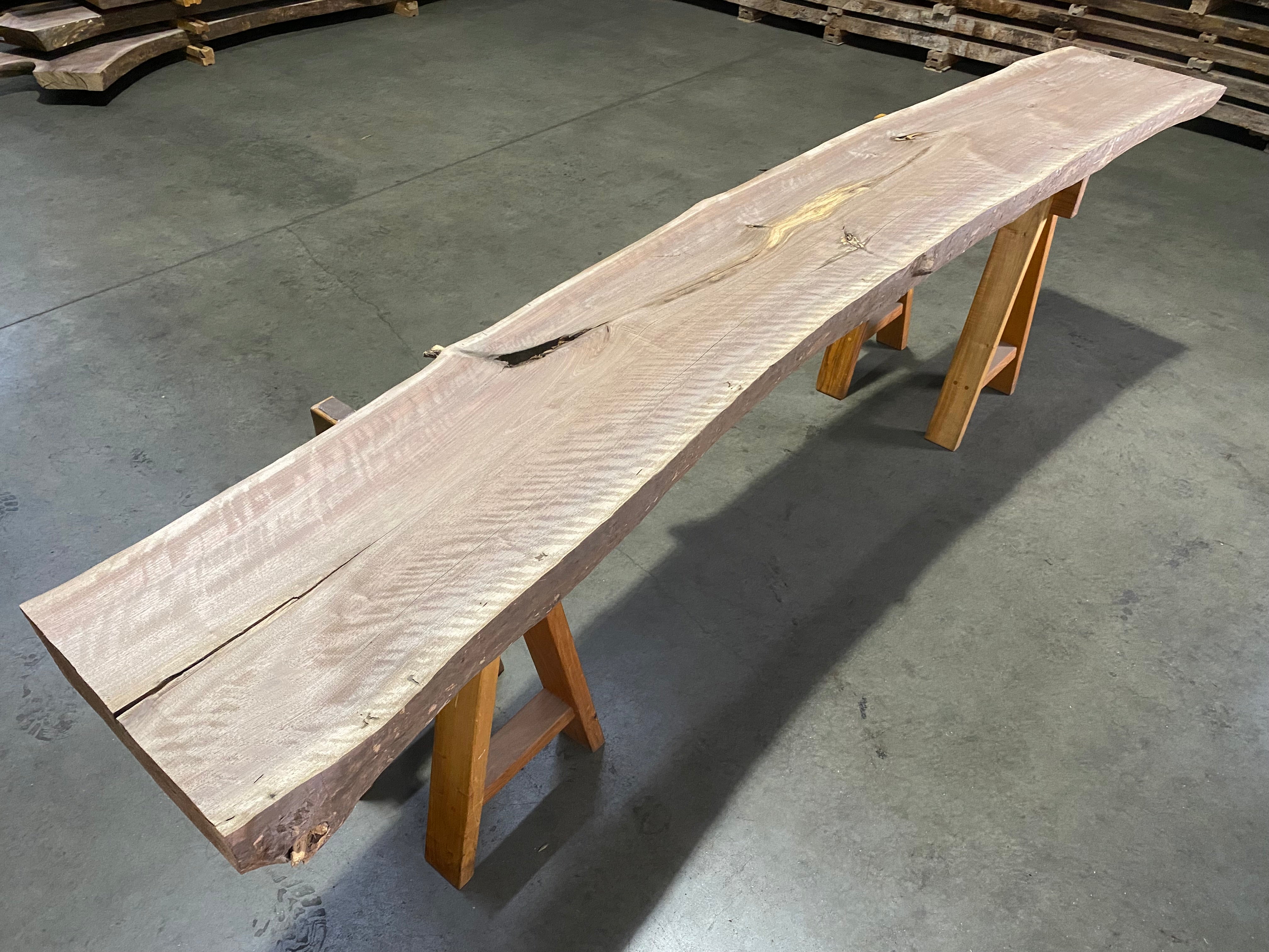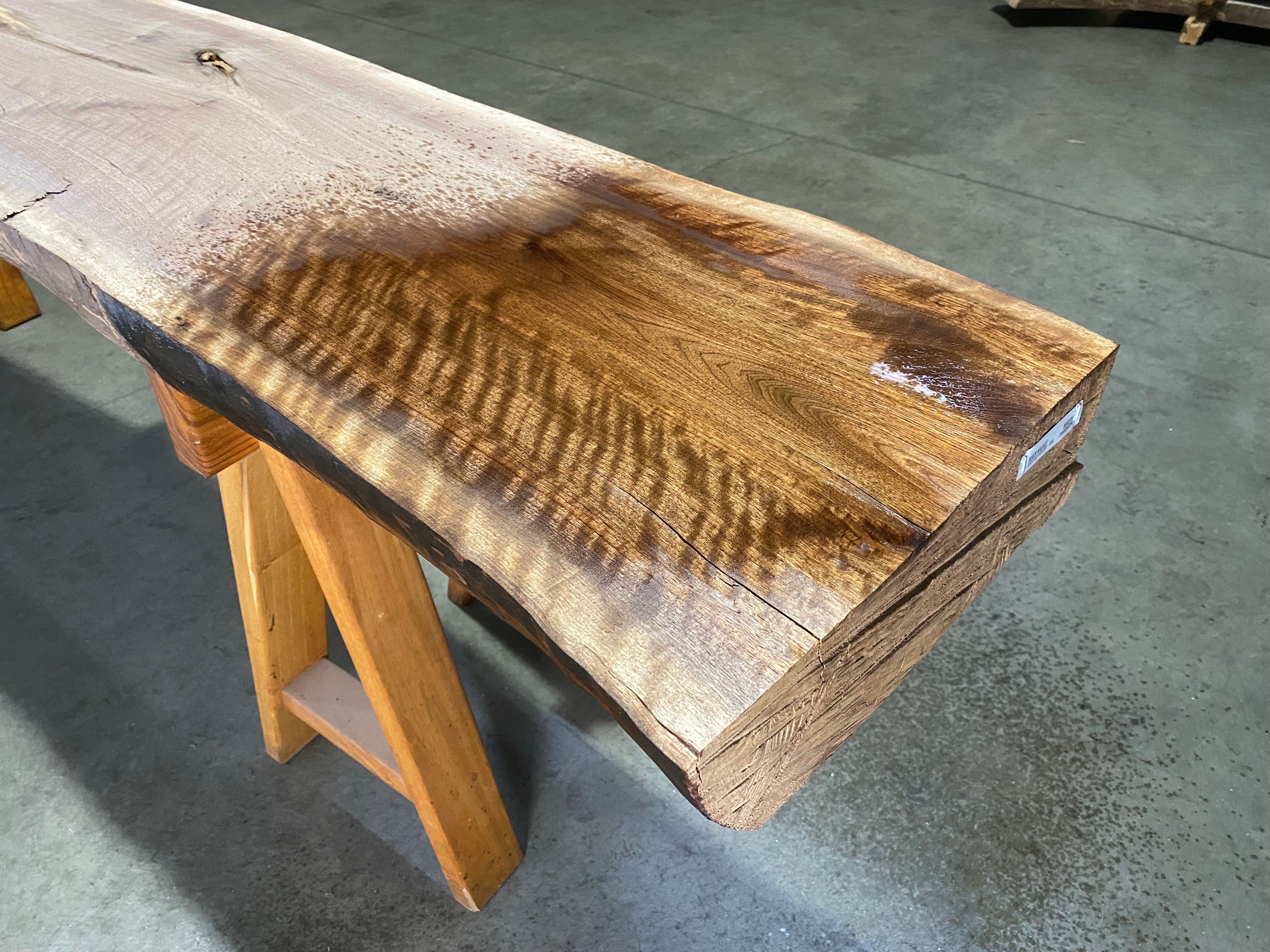 - Leveled & gauged, double live edge, end checking, surface voids, punky spot in middle, figured