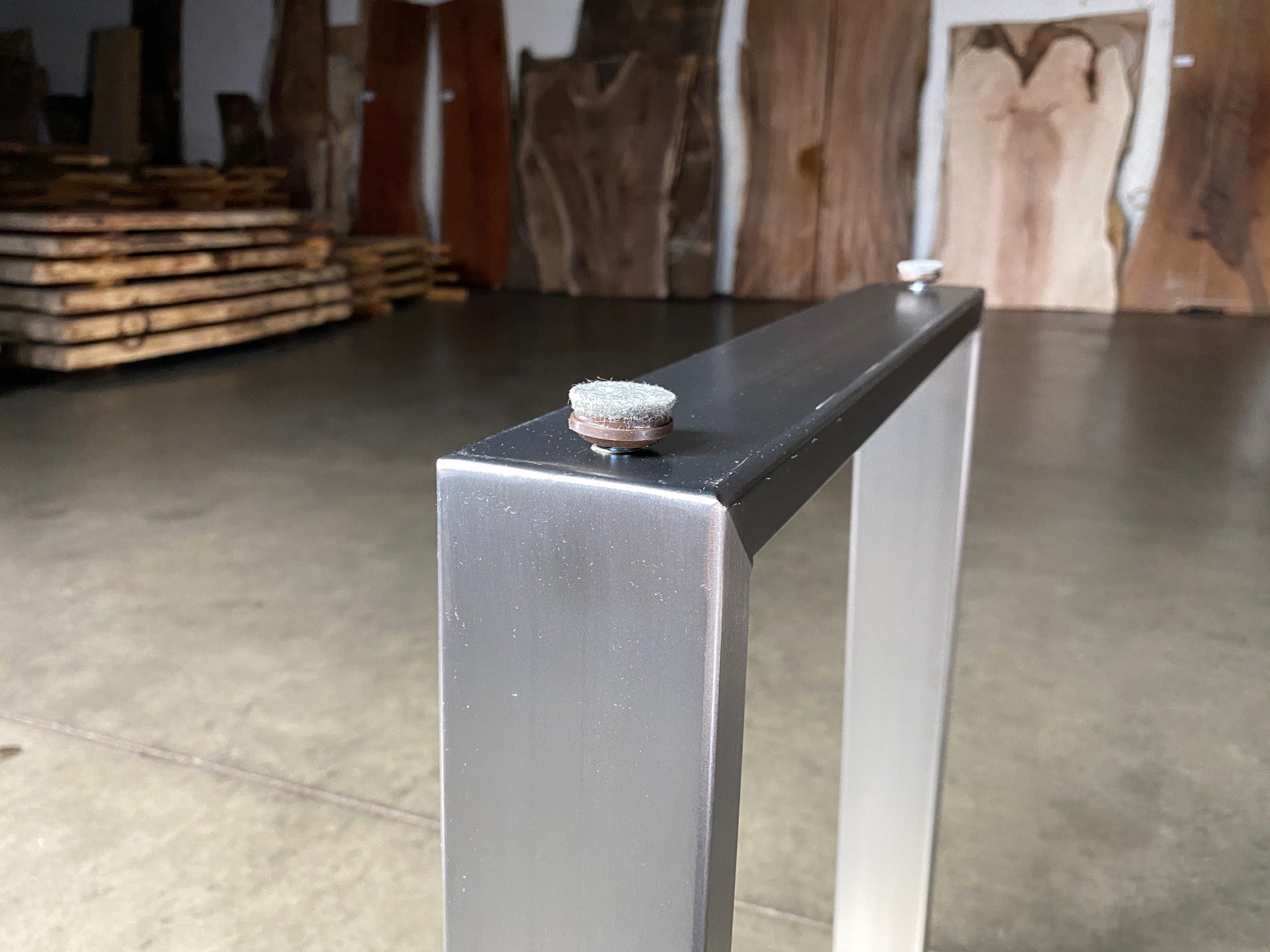 This style is available custom sized to your top and in many different finishes. Check out this blog to see how we mount our legs and bases.