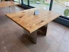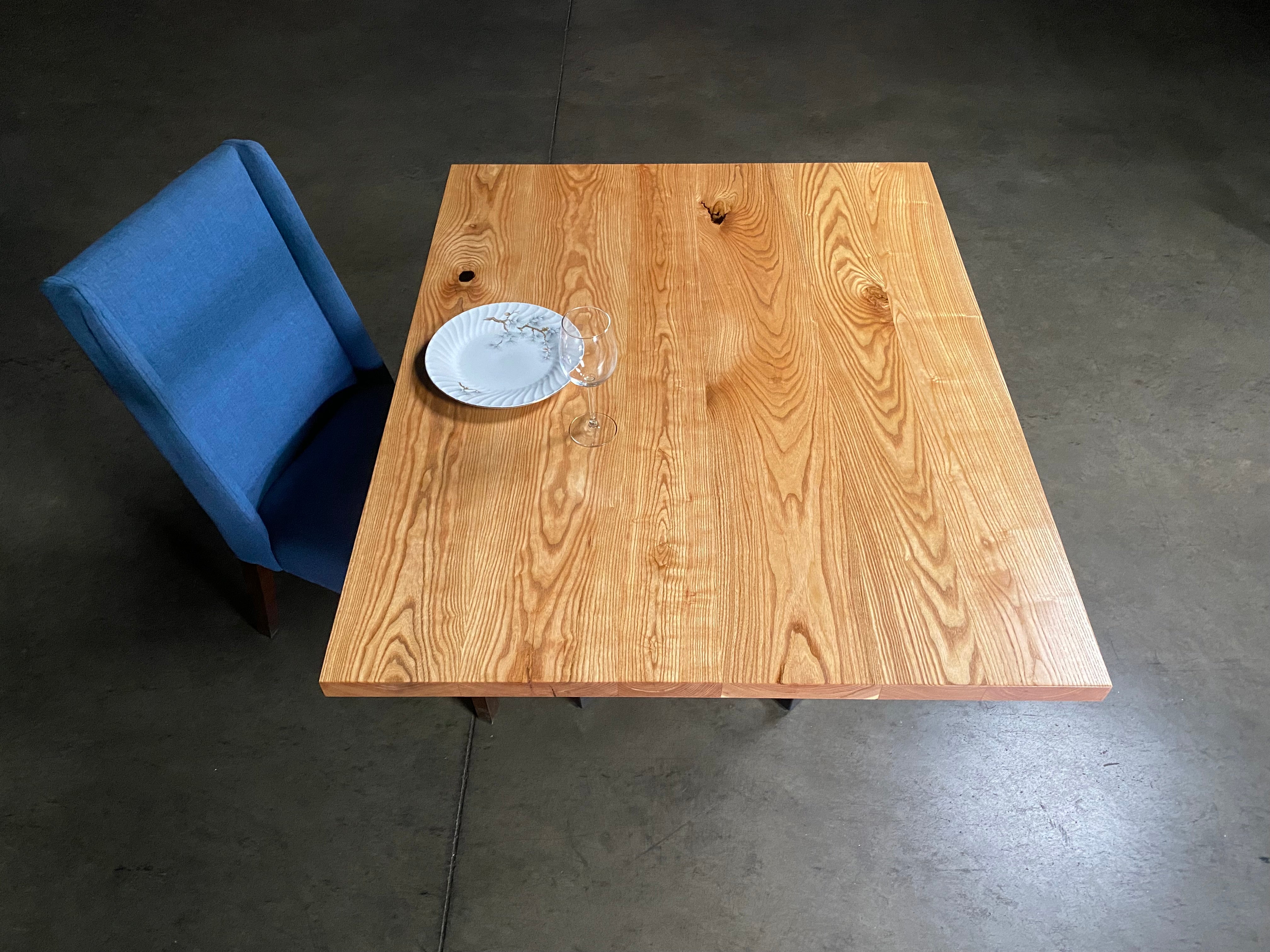 - Legs: Curved 1/4" plate steel legs with polished finish. 3/16" top plate mounted with bolts & insert nuts.