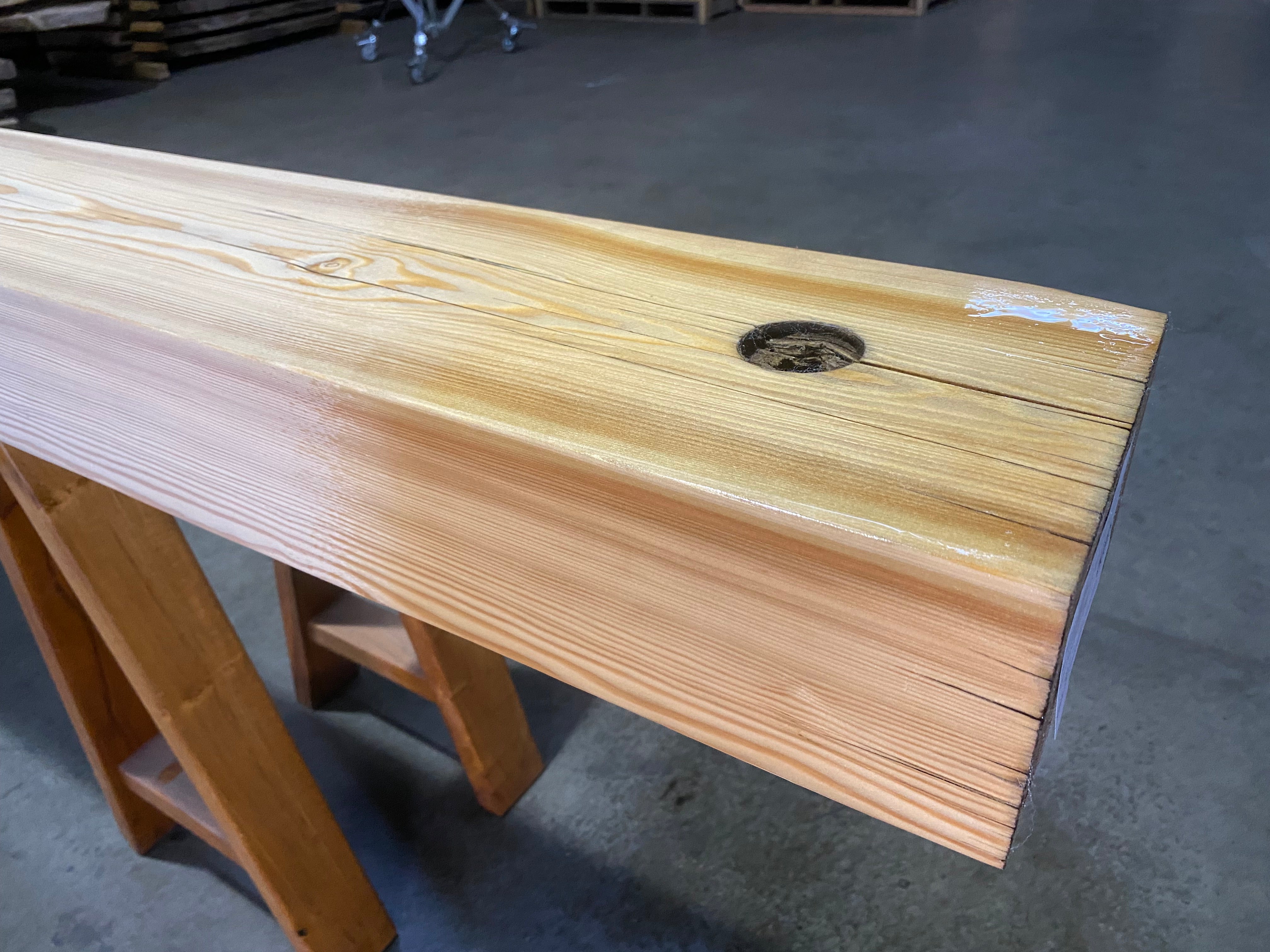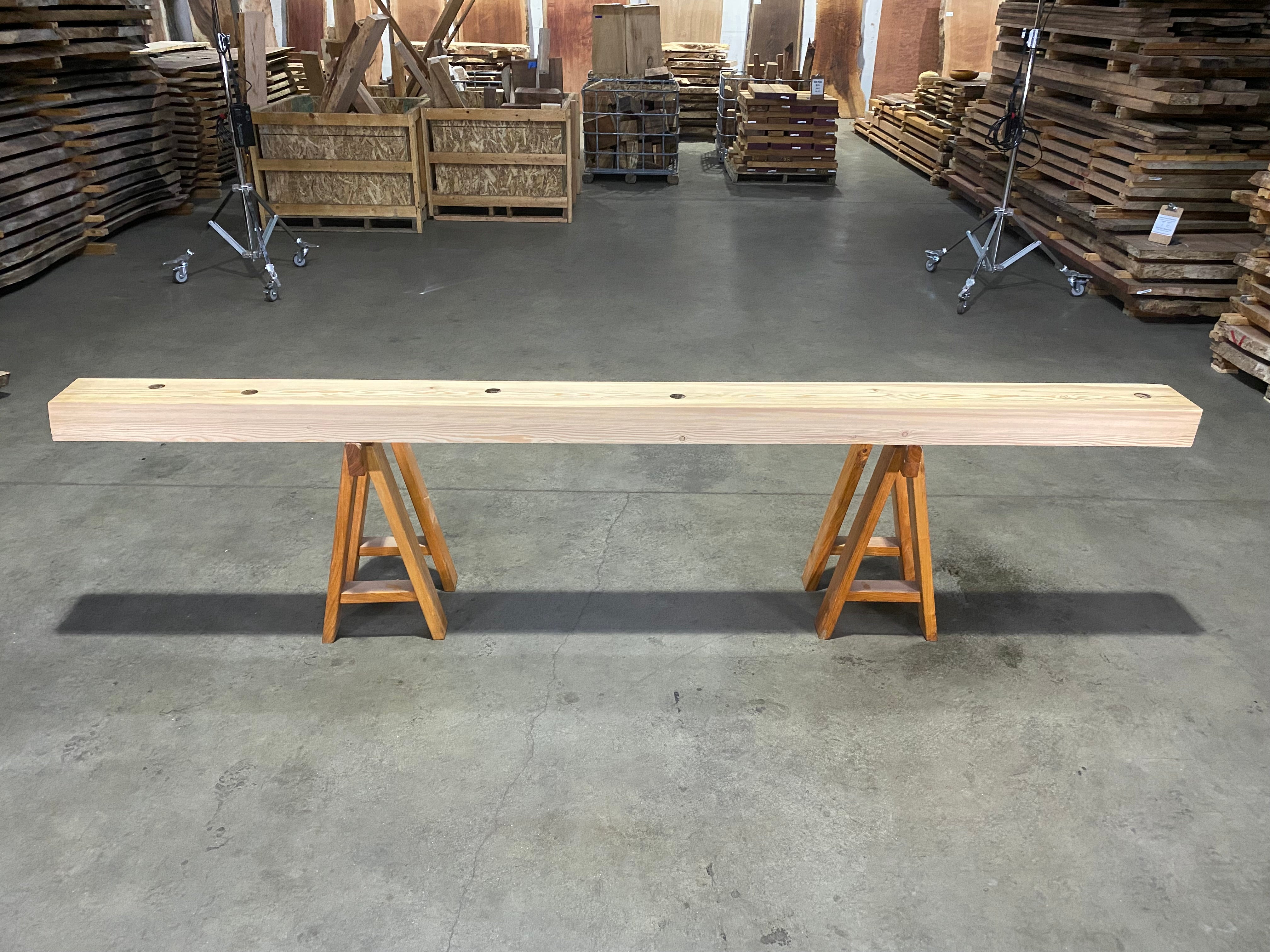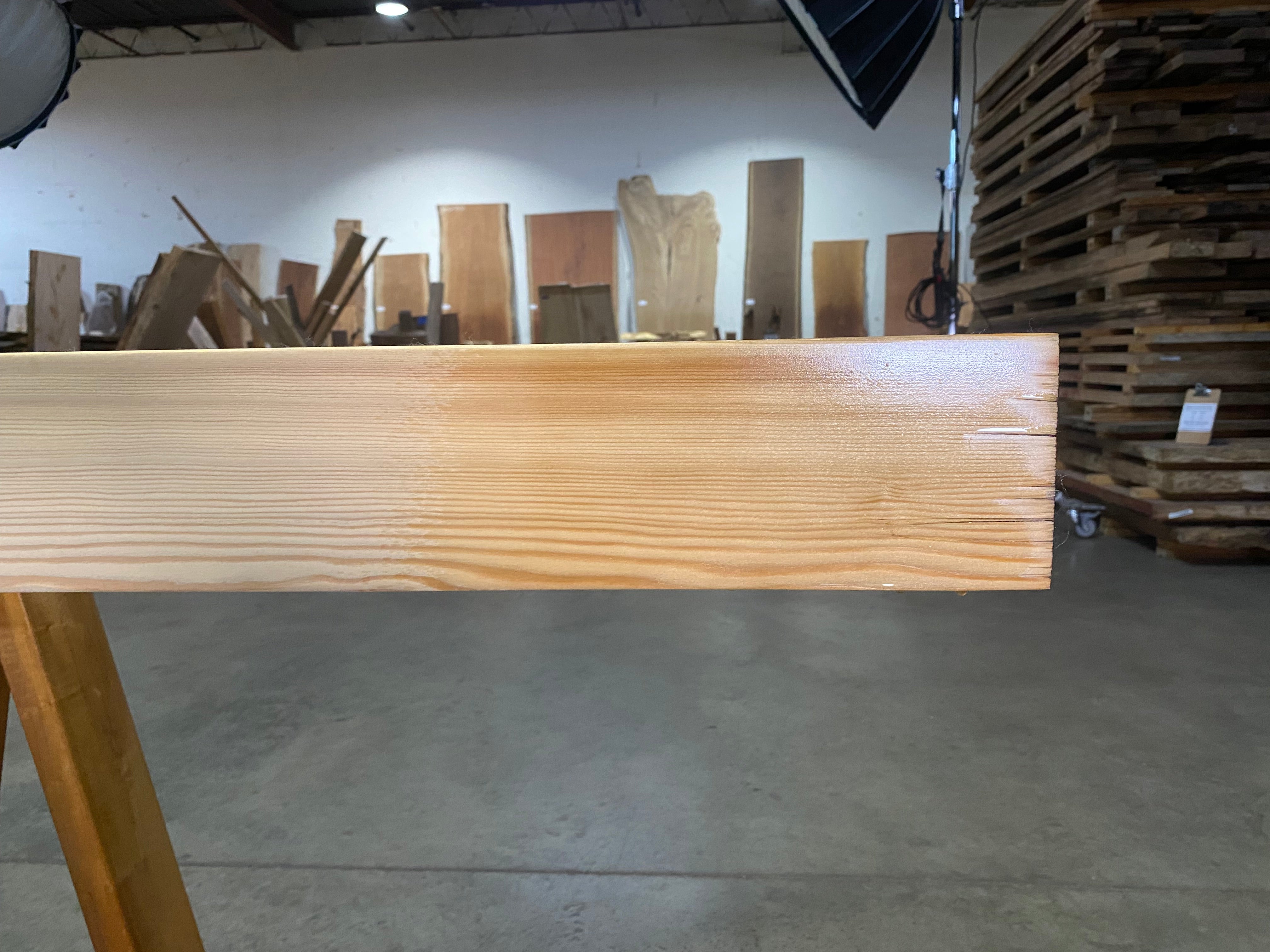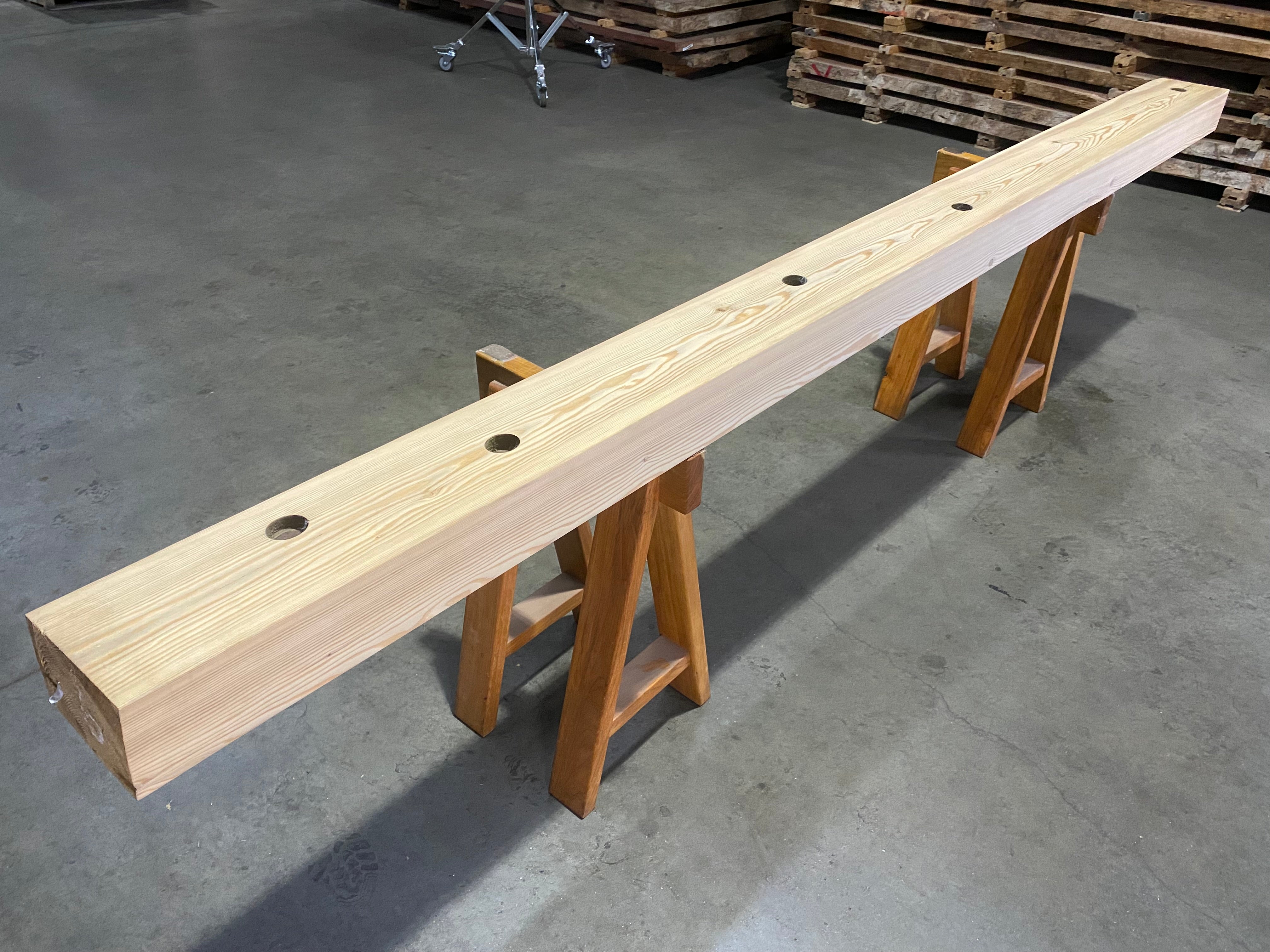 - Description: Reclaimed pine beam with weathered holes. Jointed and planed, with ends left rough so it can be cut to length.