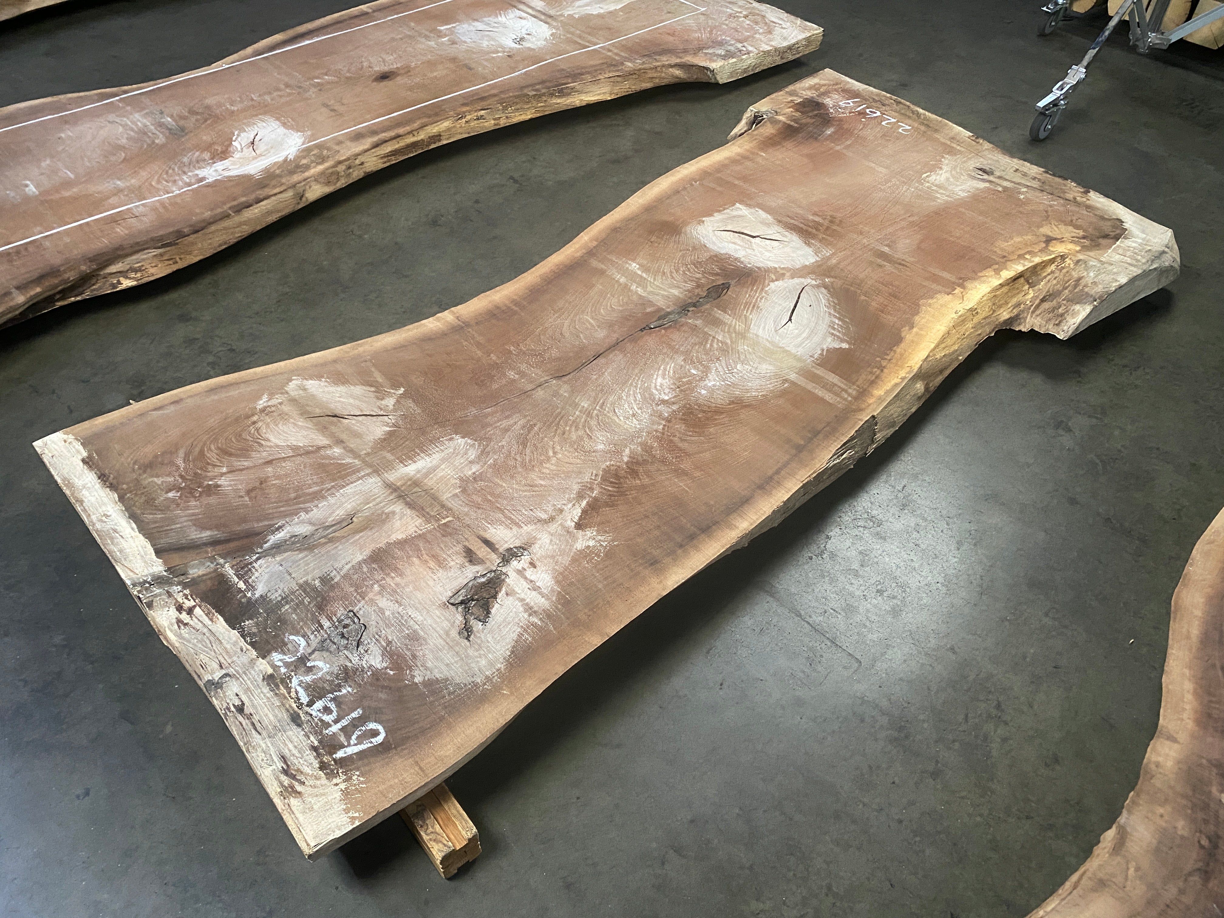 ● Rough sawn, knots, bark inclusion, minor edge damage