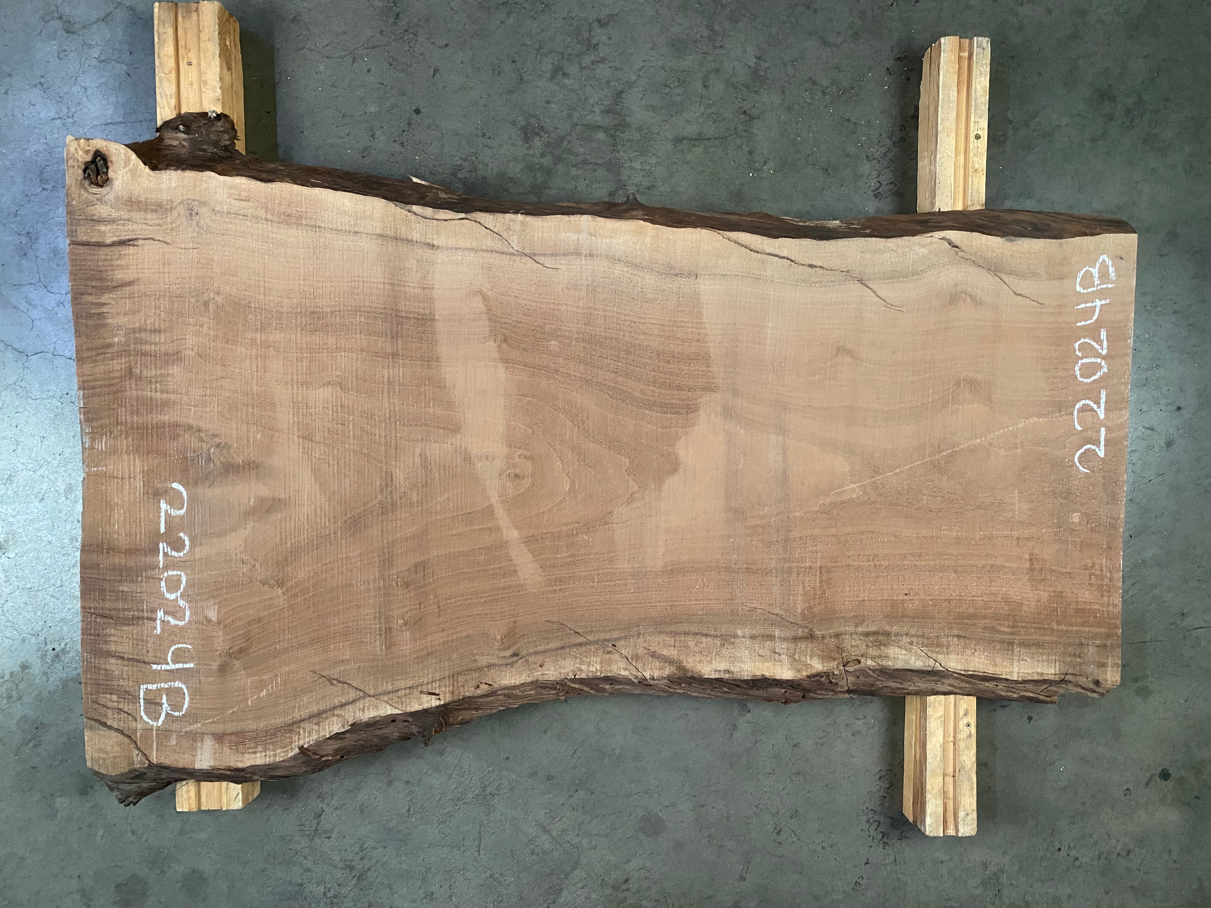 Rough sawn, thickness varies from 2"-2.5" thickness, end and edge checks, figured