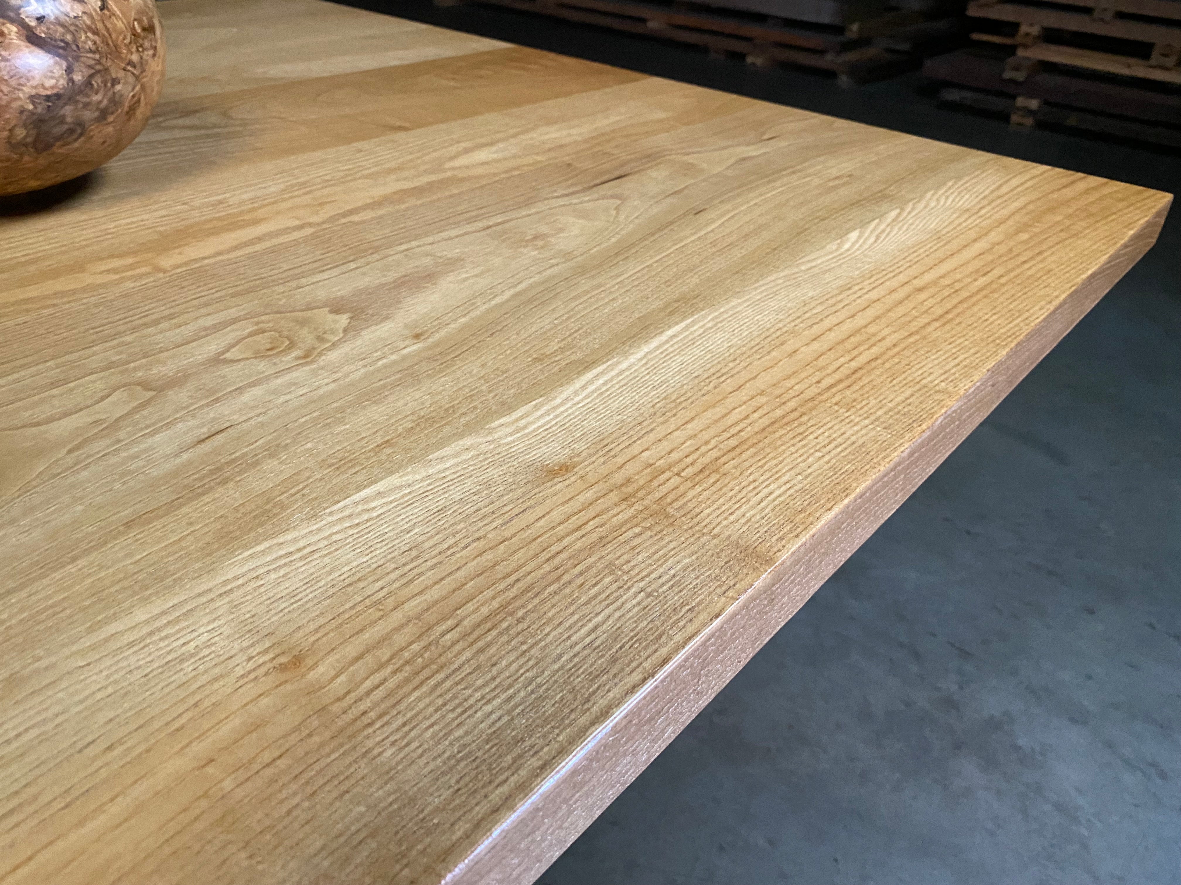 Finish: Sand polished from 80 to 400 grit. Tough - water/alcohol resistant. Six coats of sustainable, natural and earth-friendly polymerized Tung oil and Uralkyd resin.