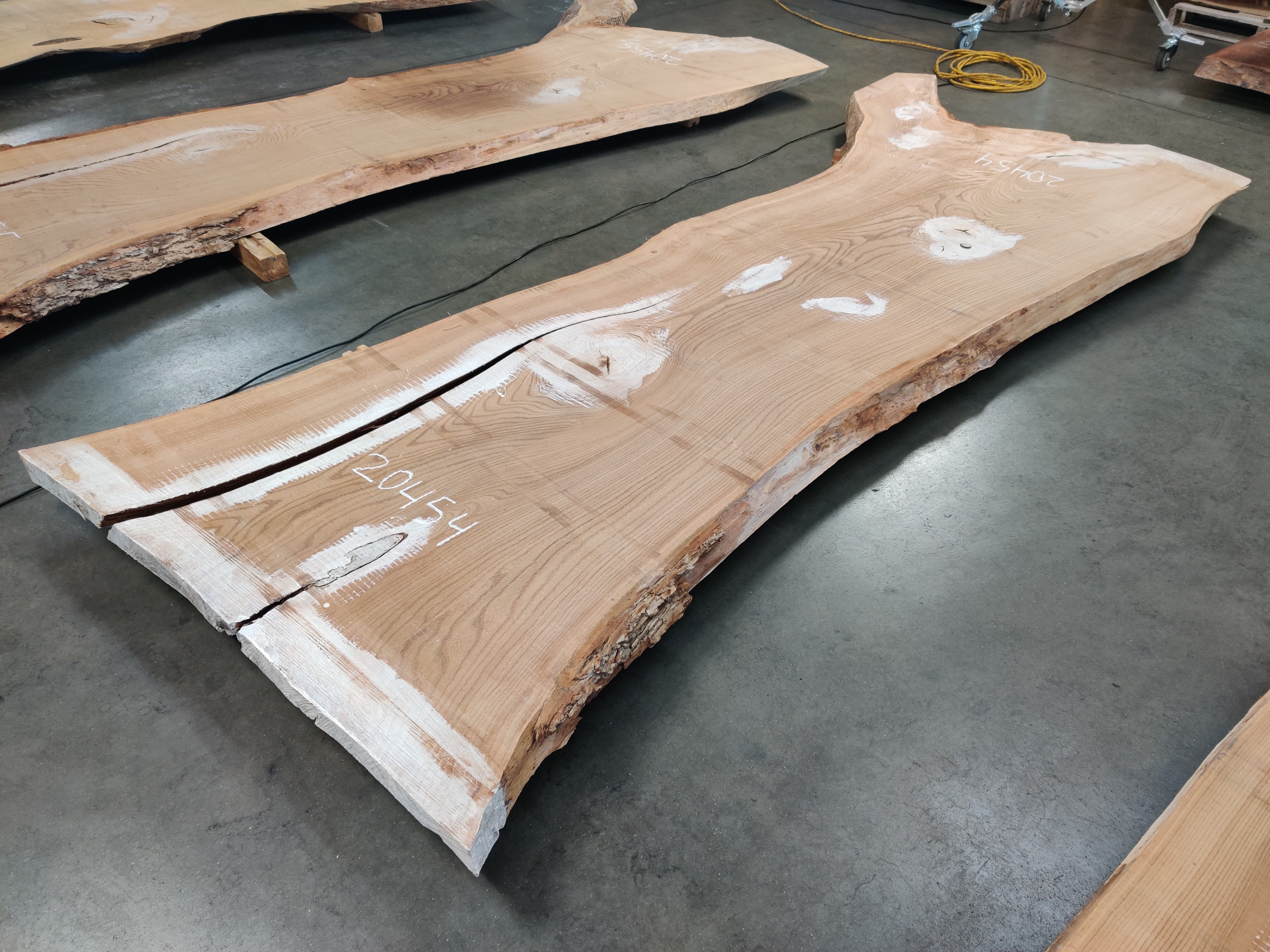 - Almost three live edges, limb knots, bark inclusion,