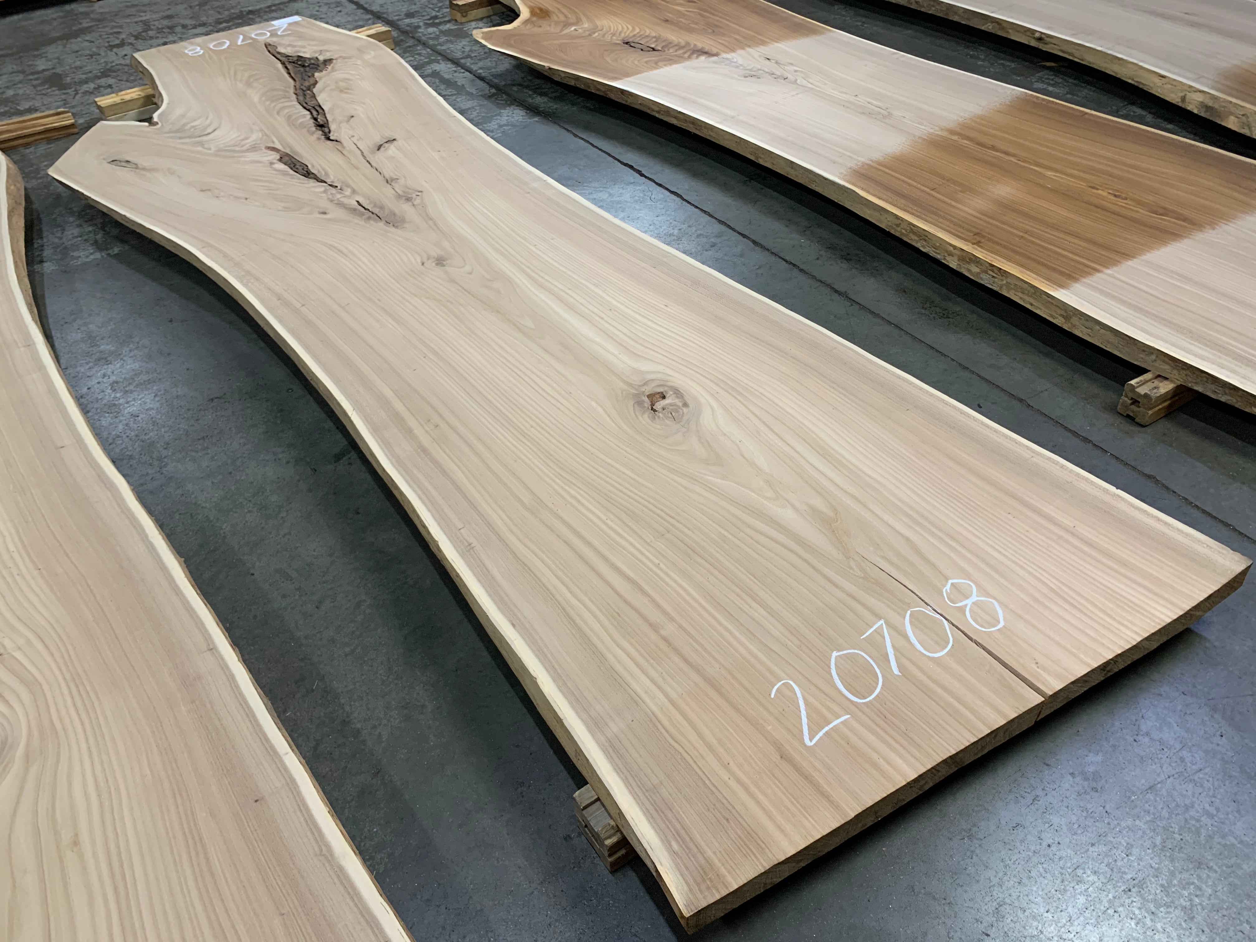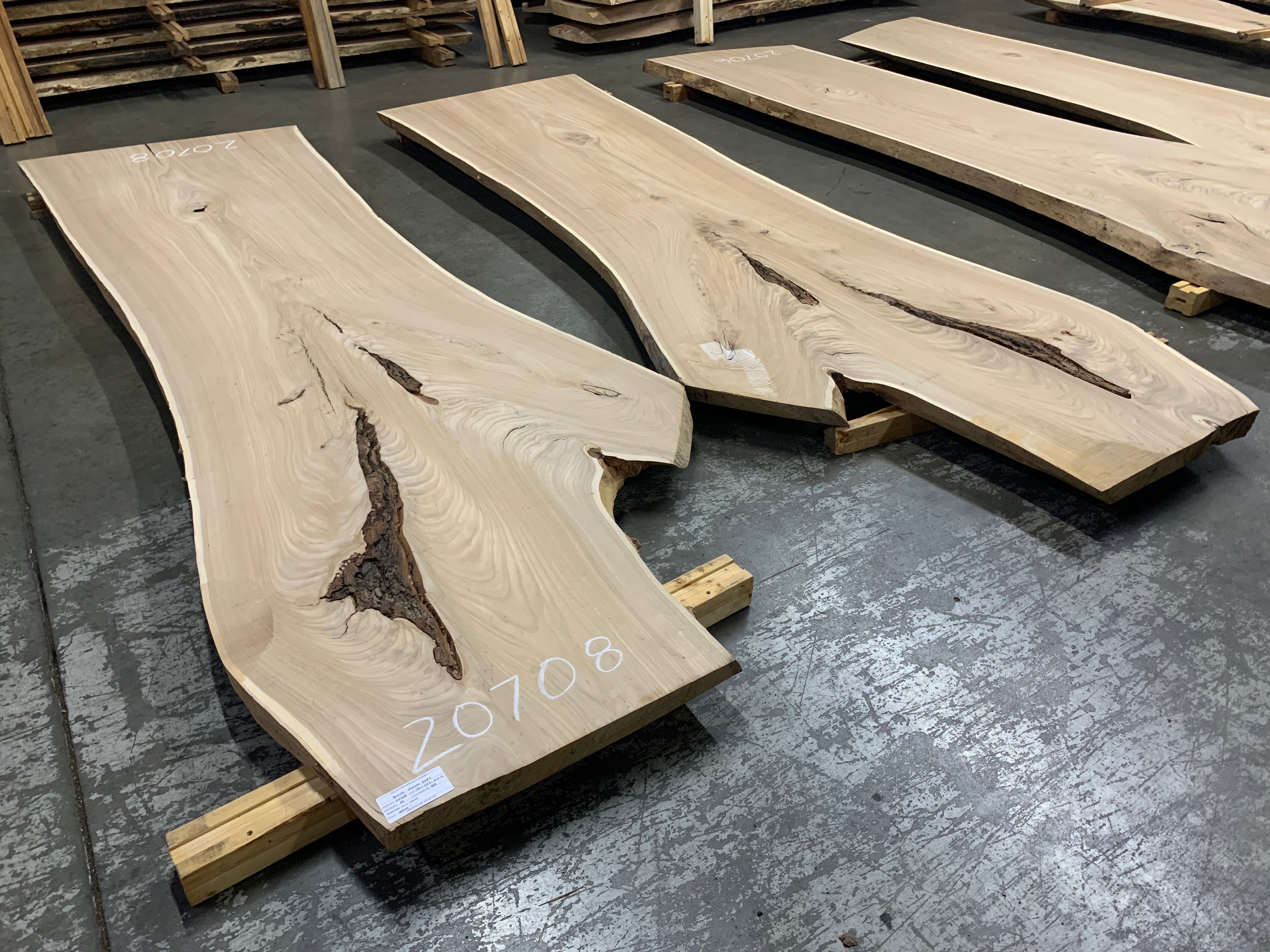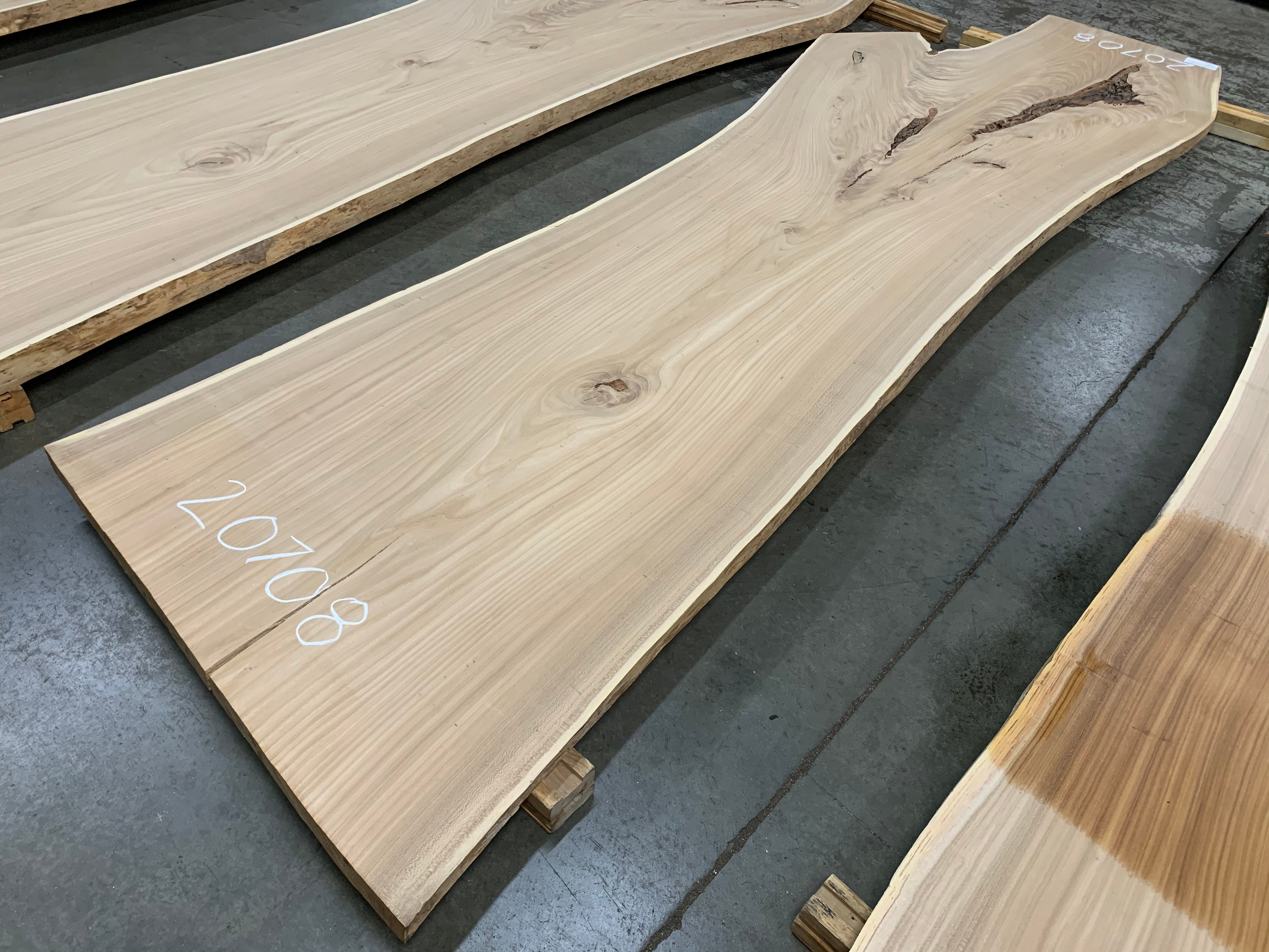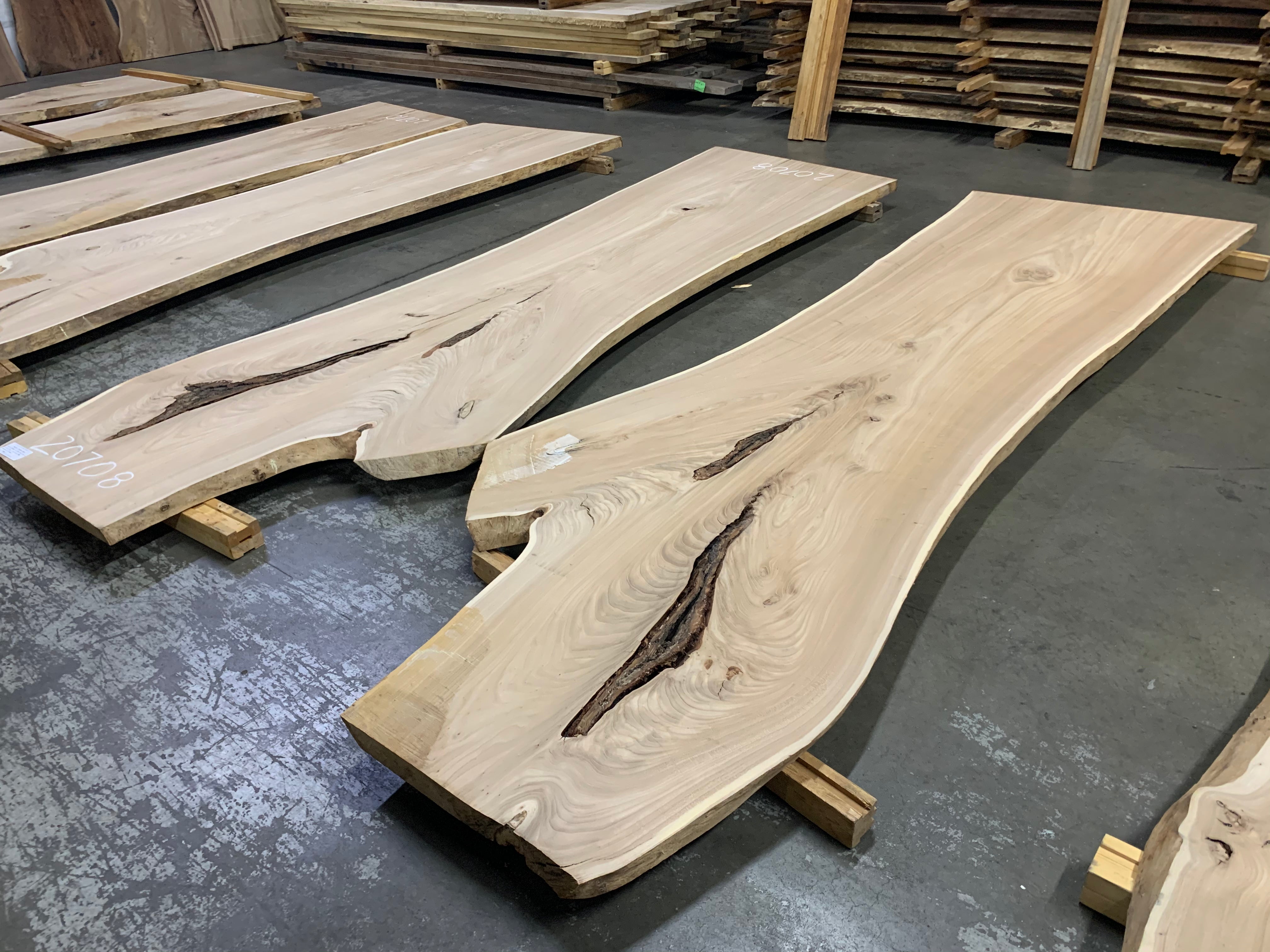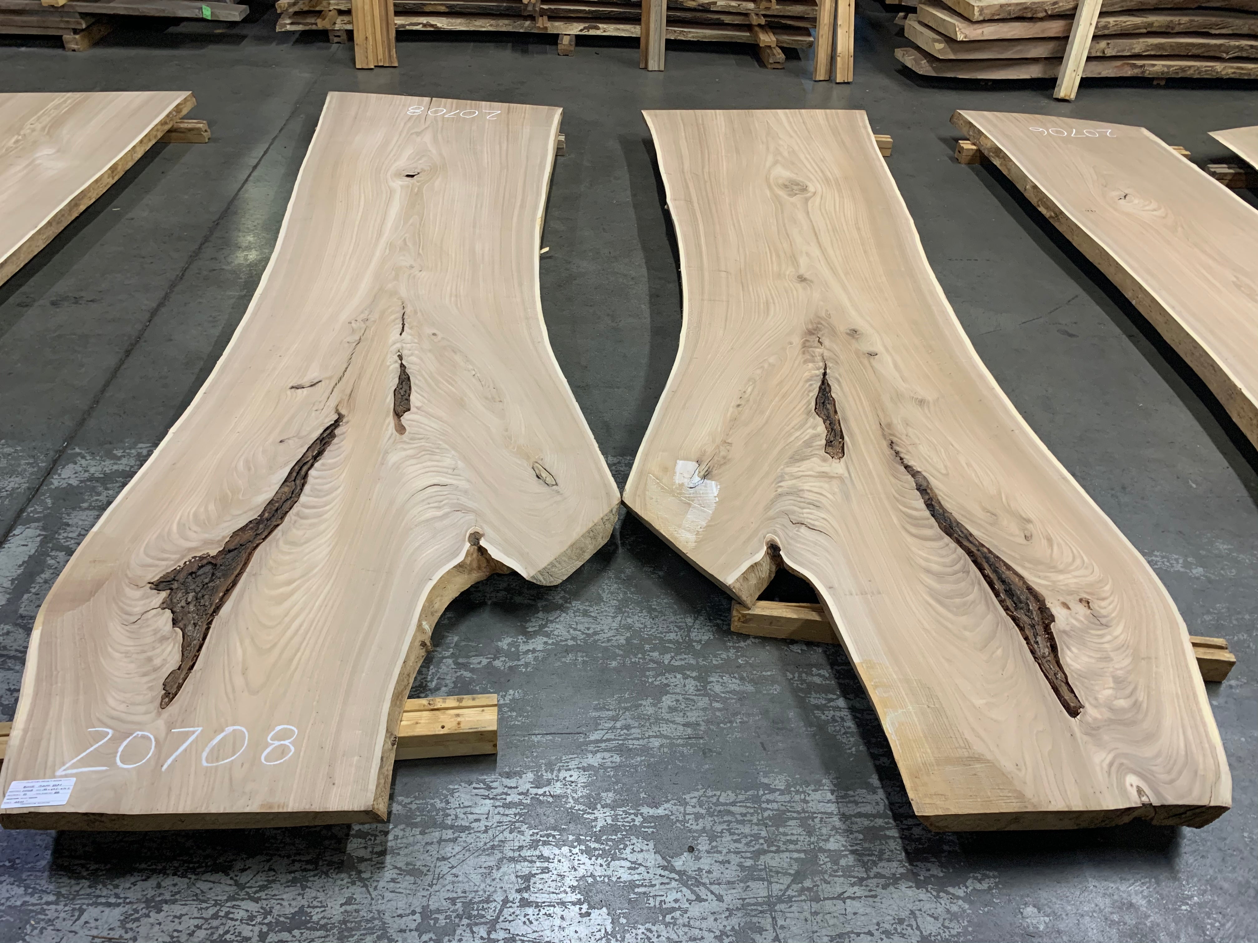- Crotch figure, bark inclusion, some surface checking, some small tight knots