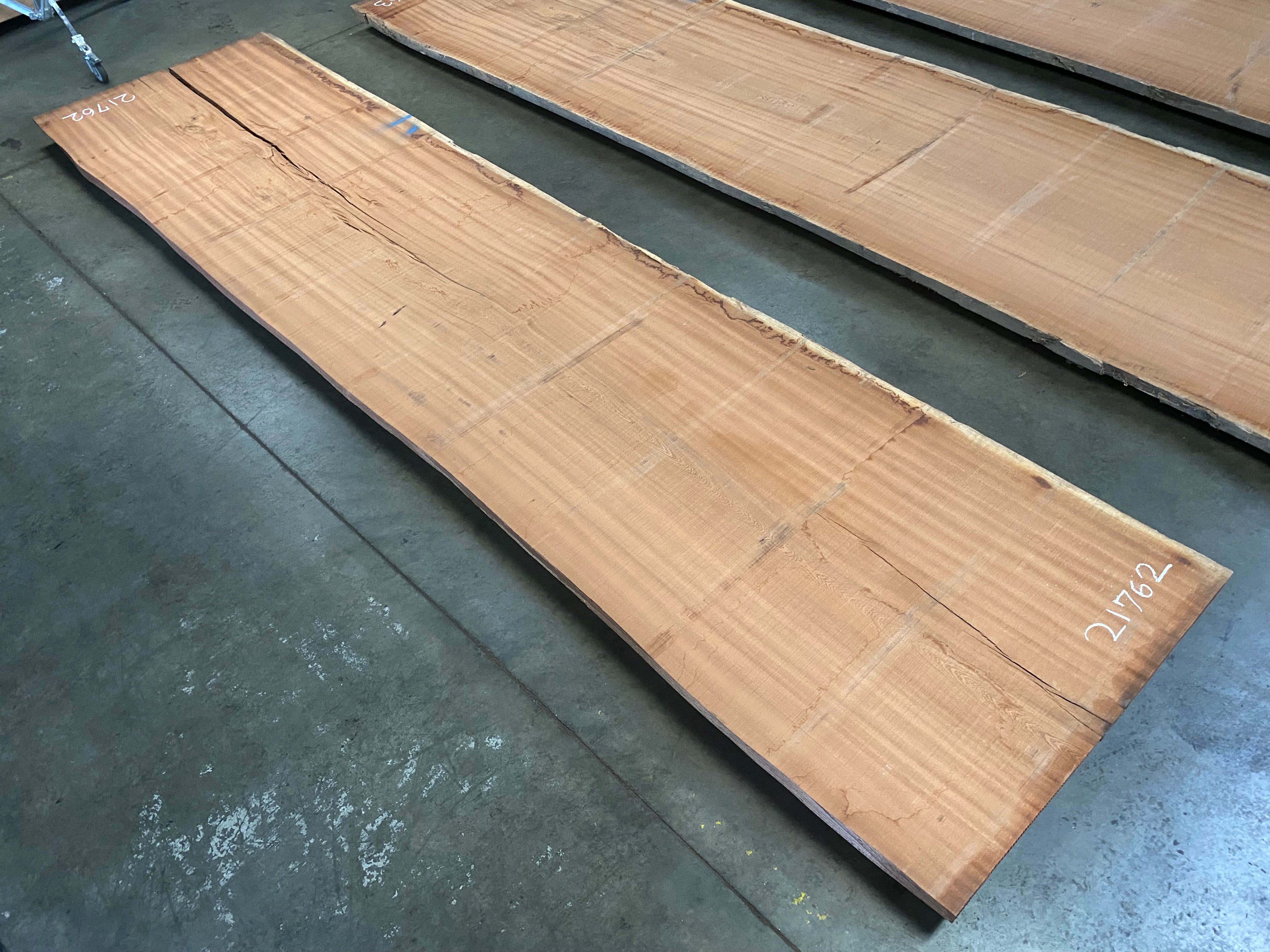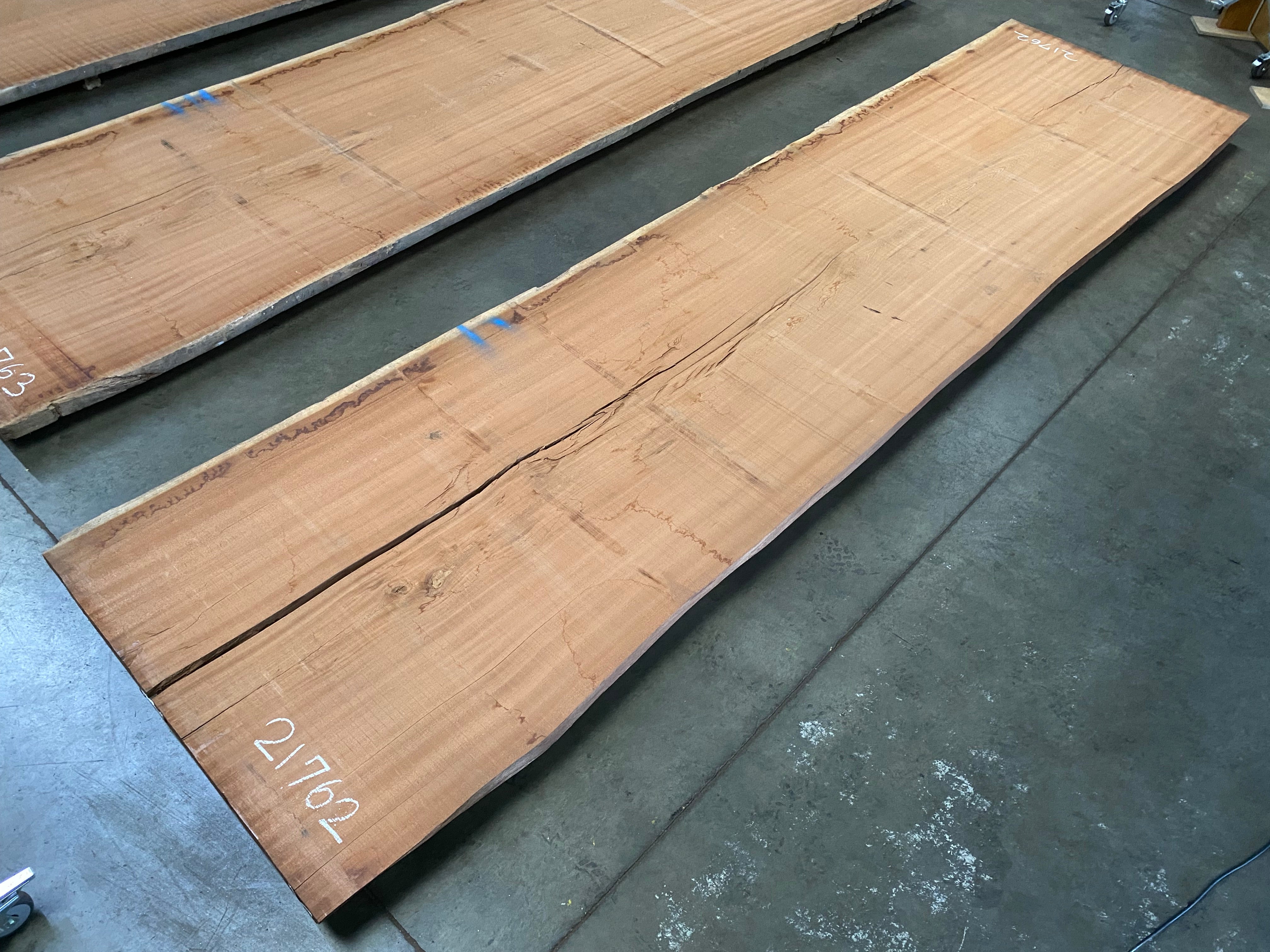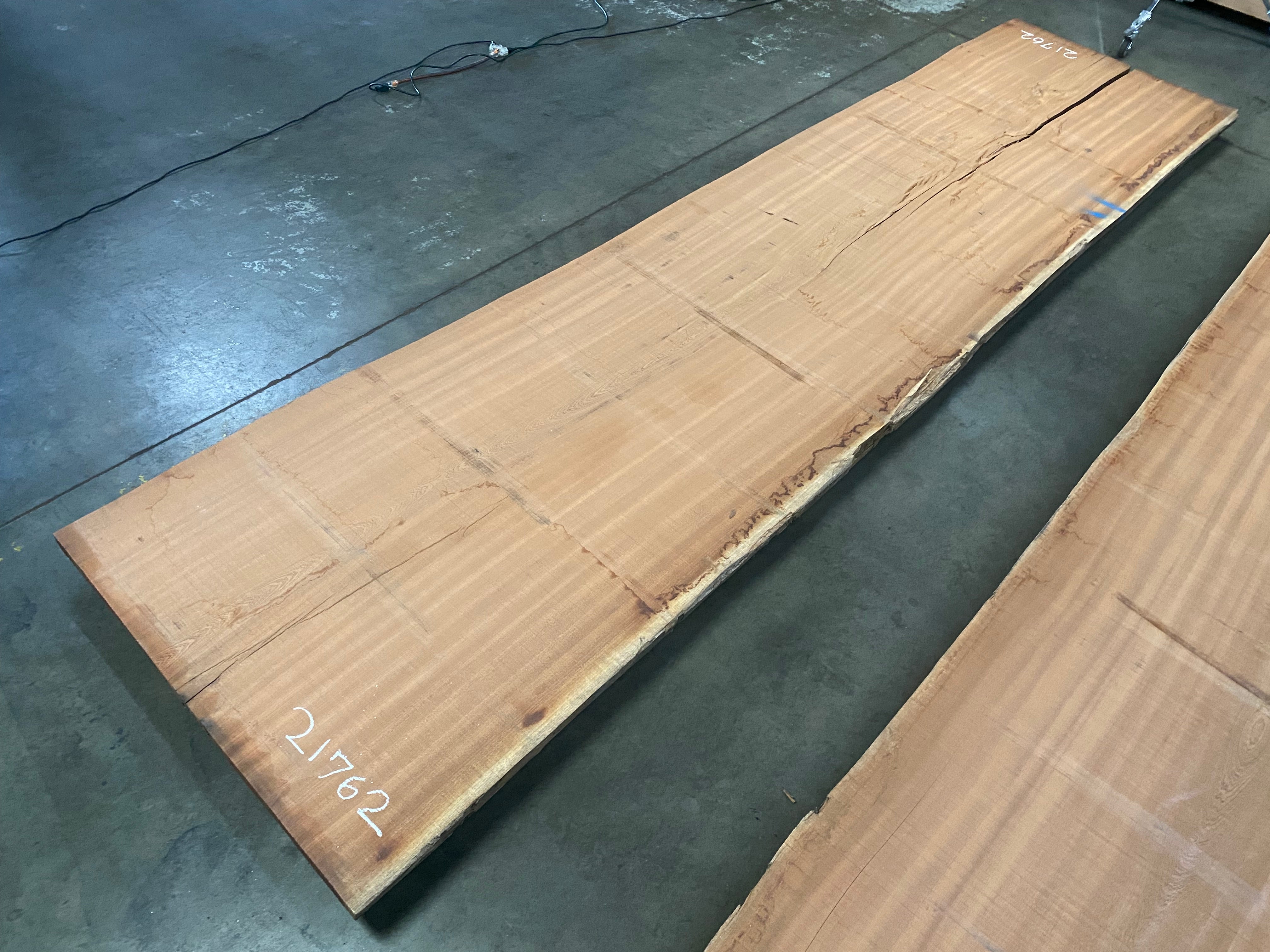 - Rough sawn, single live edge, surface checks,104" & 36" end splits, edge damage, ribbon figure