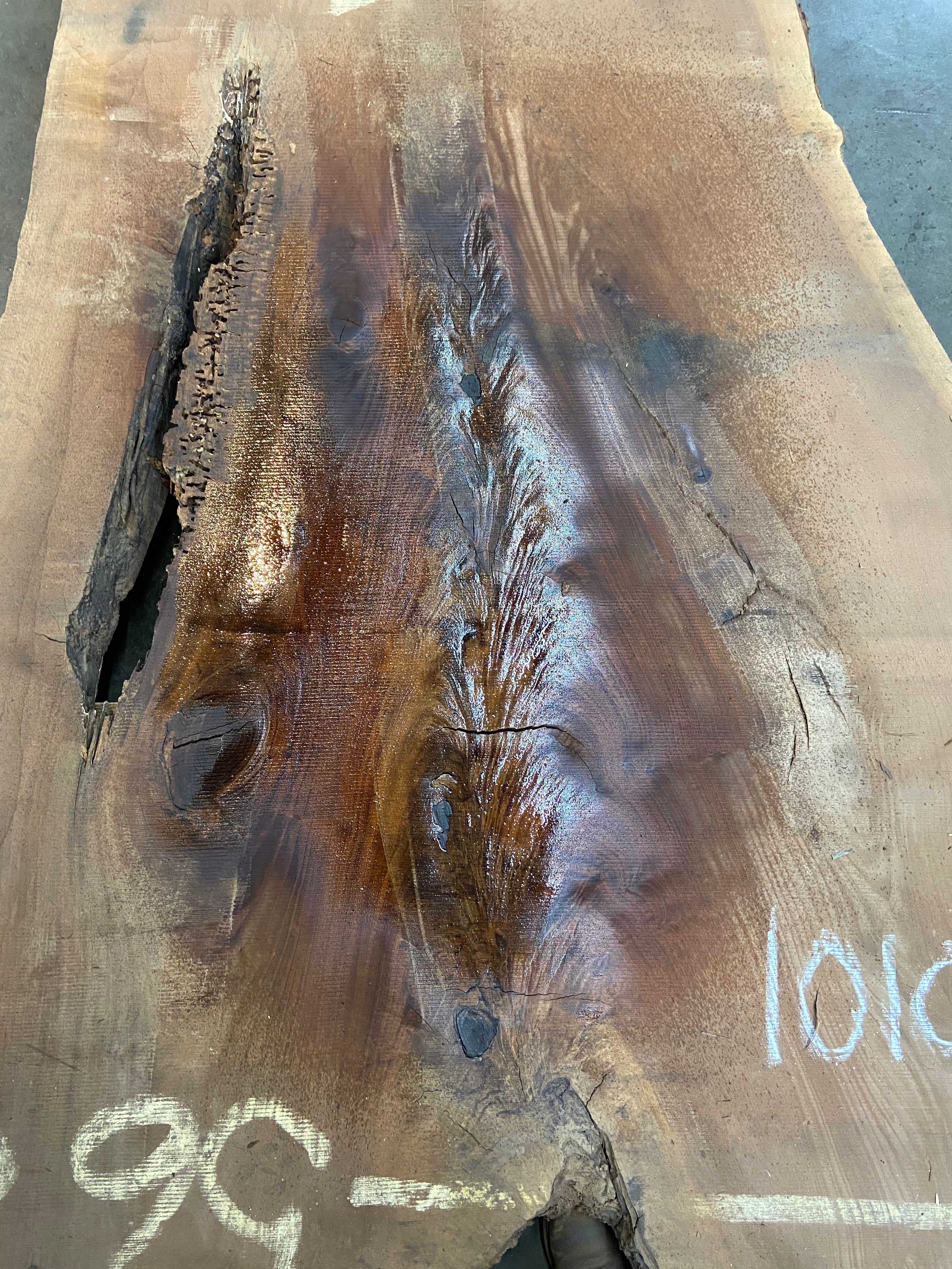 - Some knots, bark inclusion, bug holes, void all the way though, some surface checking