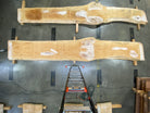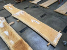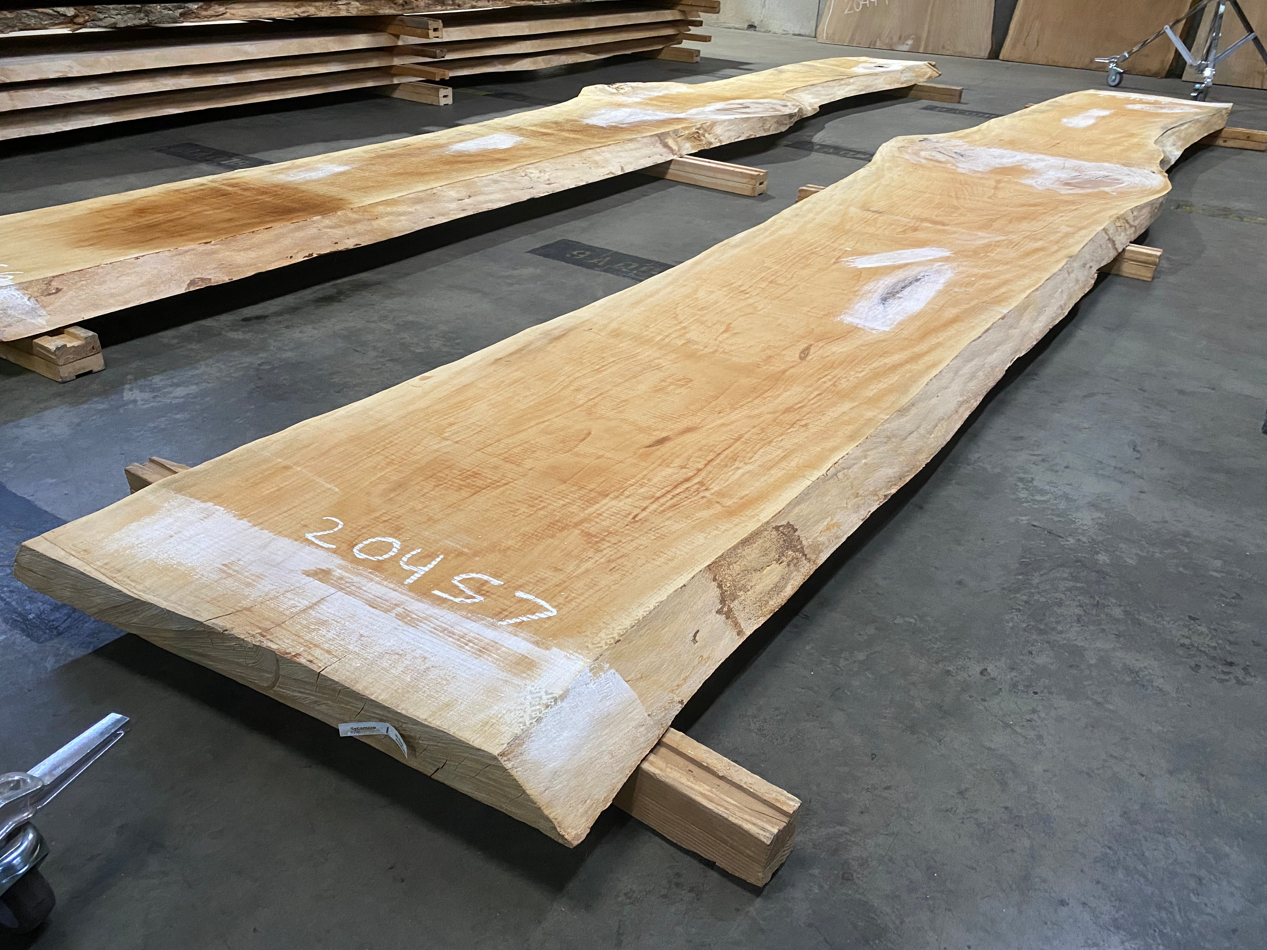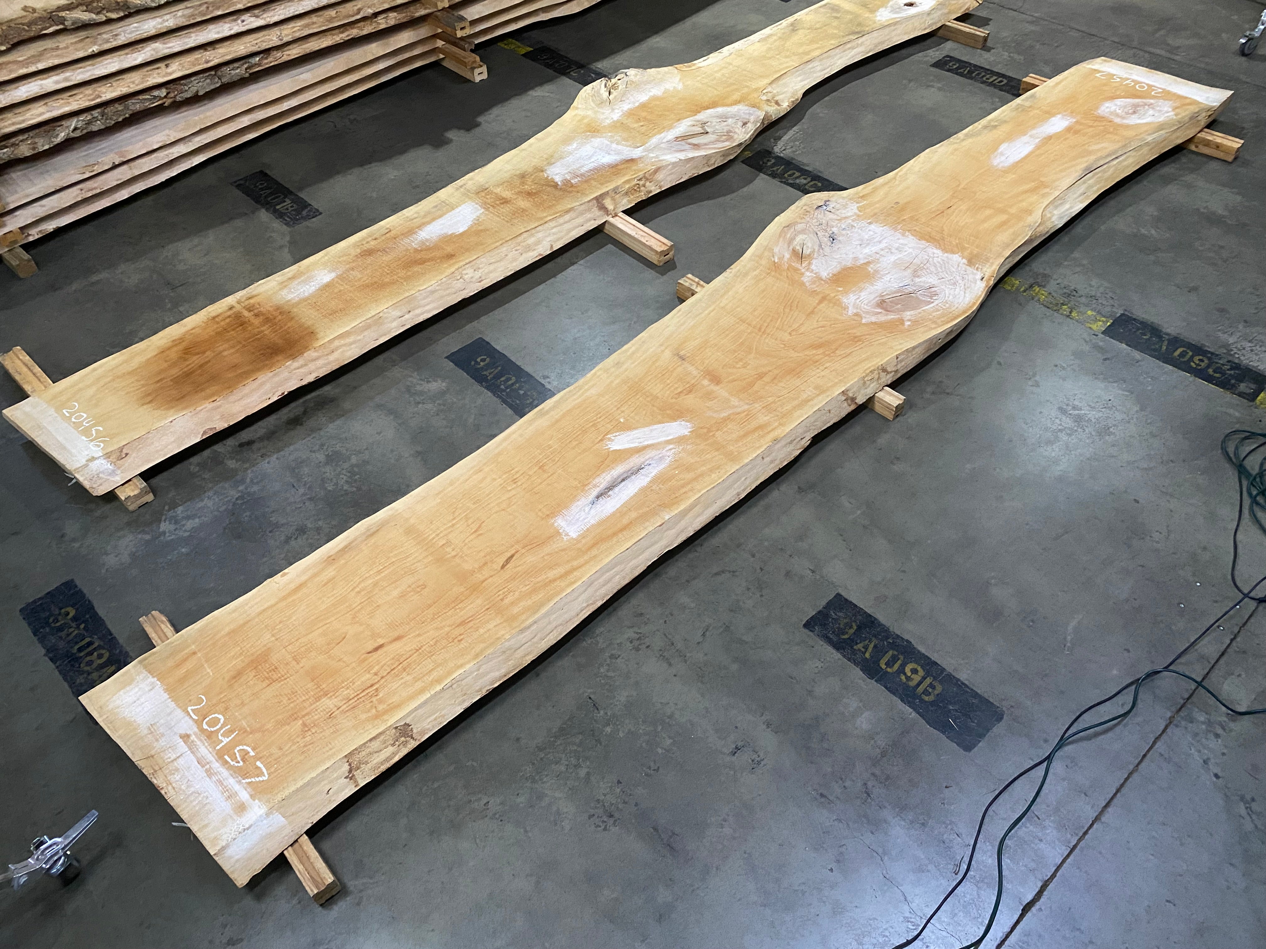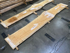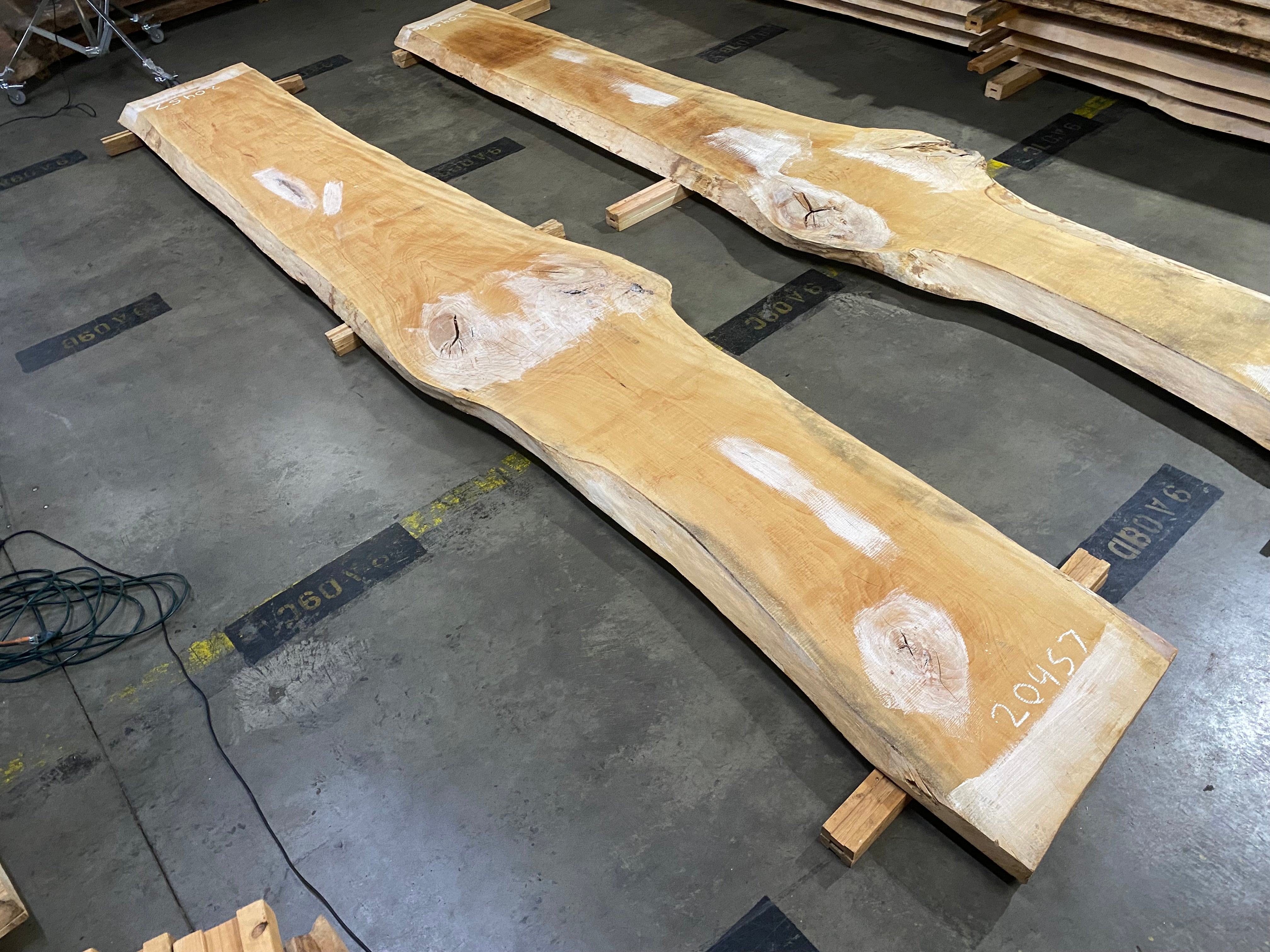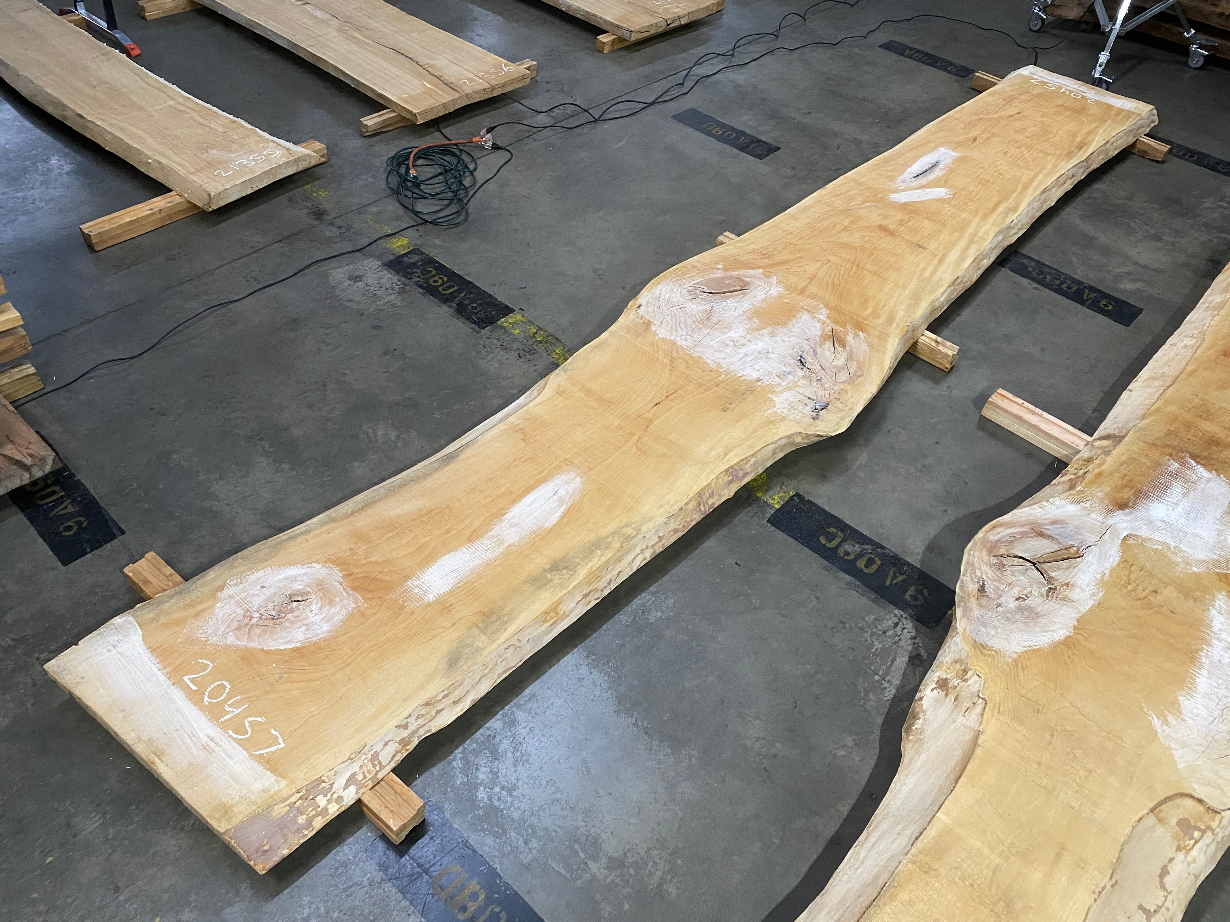 - Slight cup, surface checks, 3 open knots, bark inclusions wavy figure