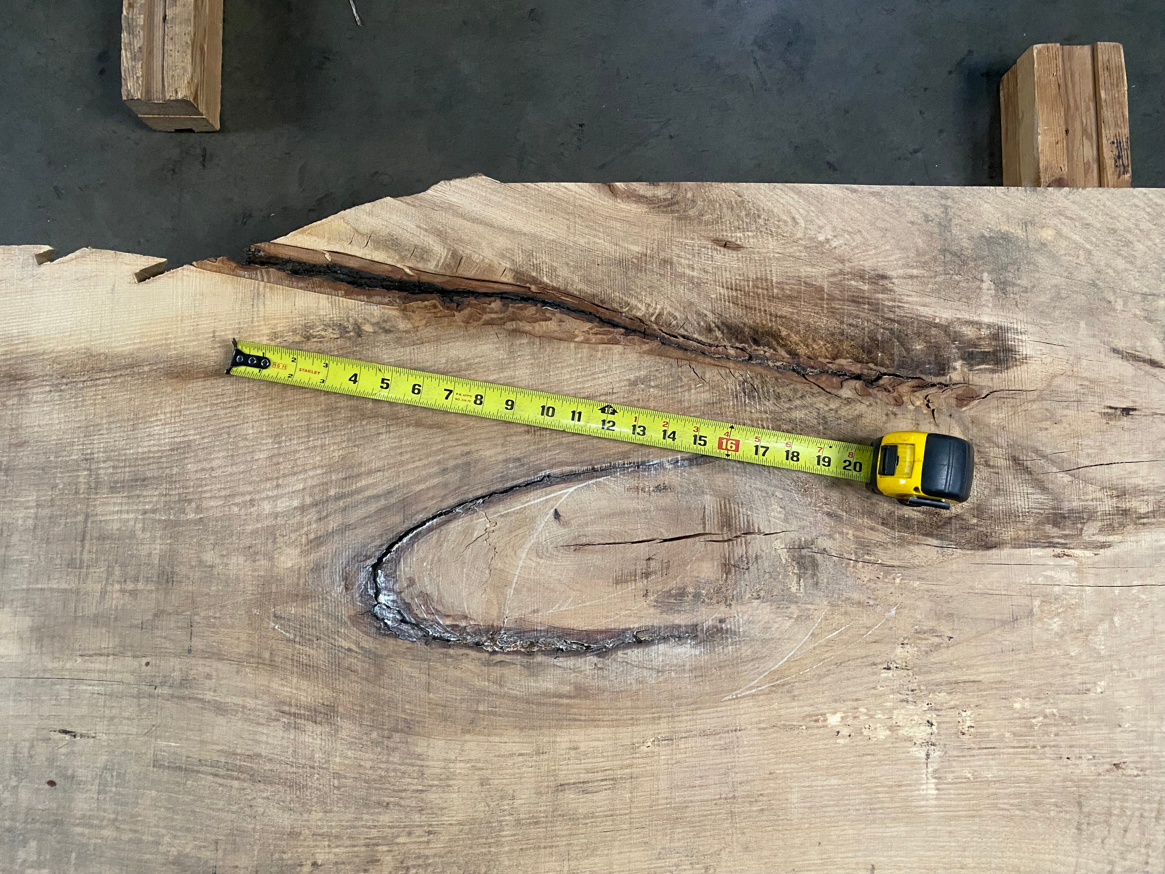 • Rough sawn, checking, bark inclusions, large split, discoloration