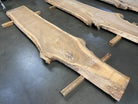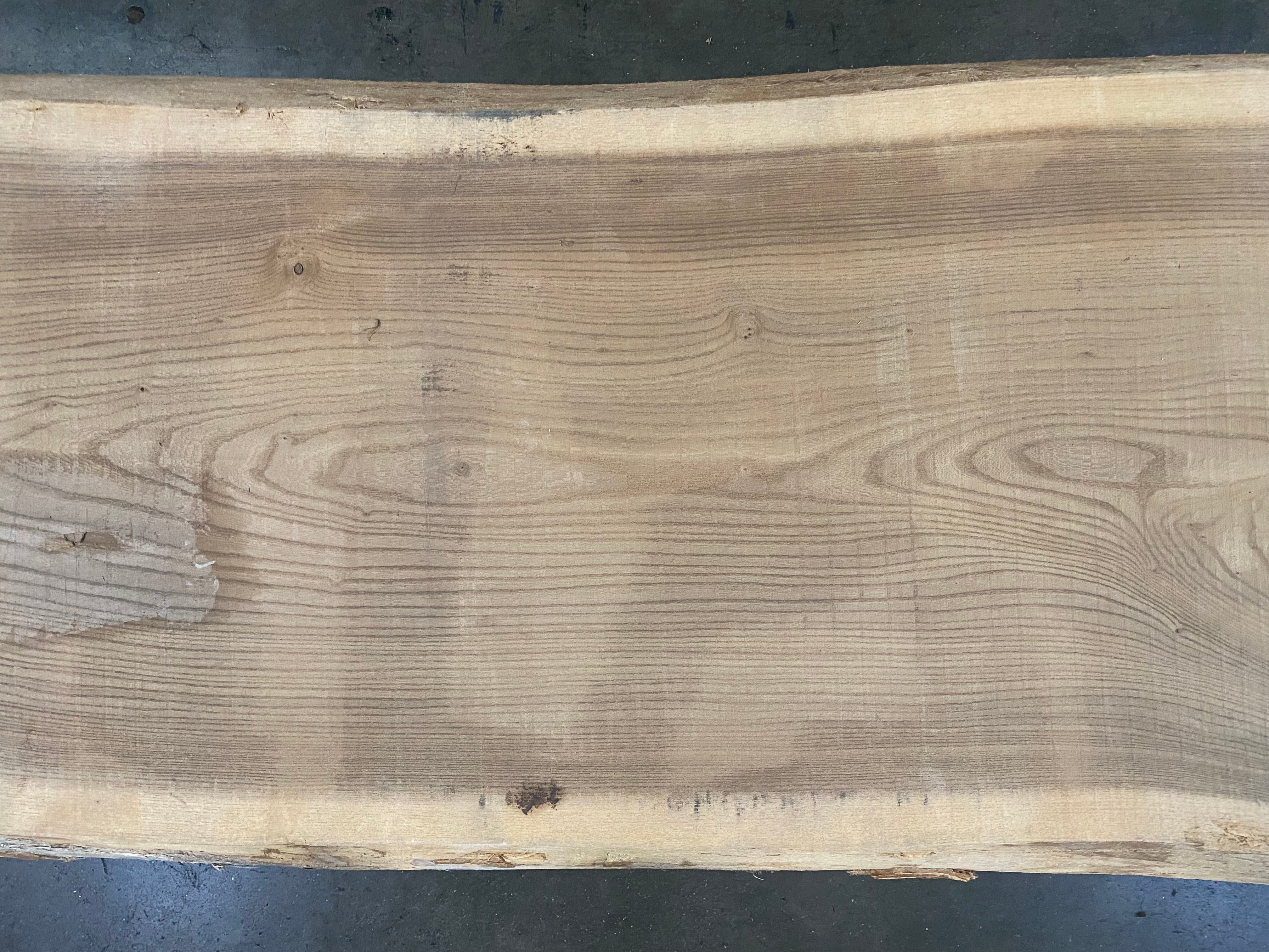 - Rough sawn, bark inclusion, minor surface checks, edge damage