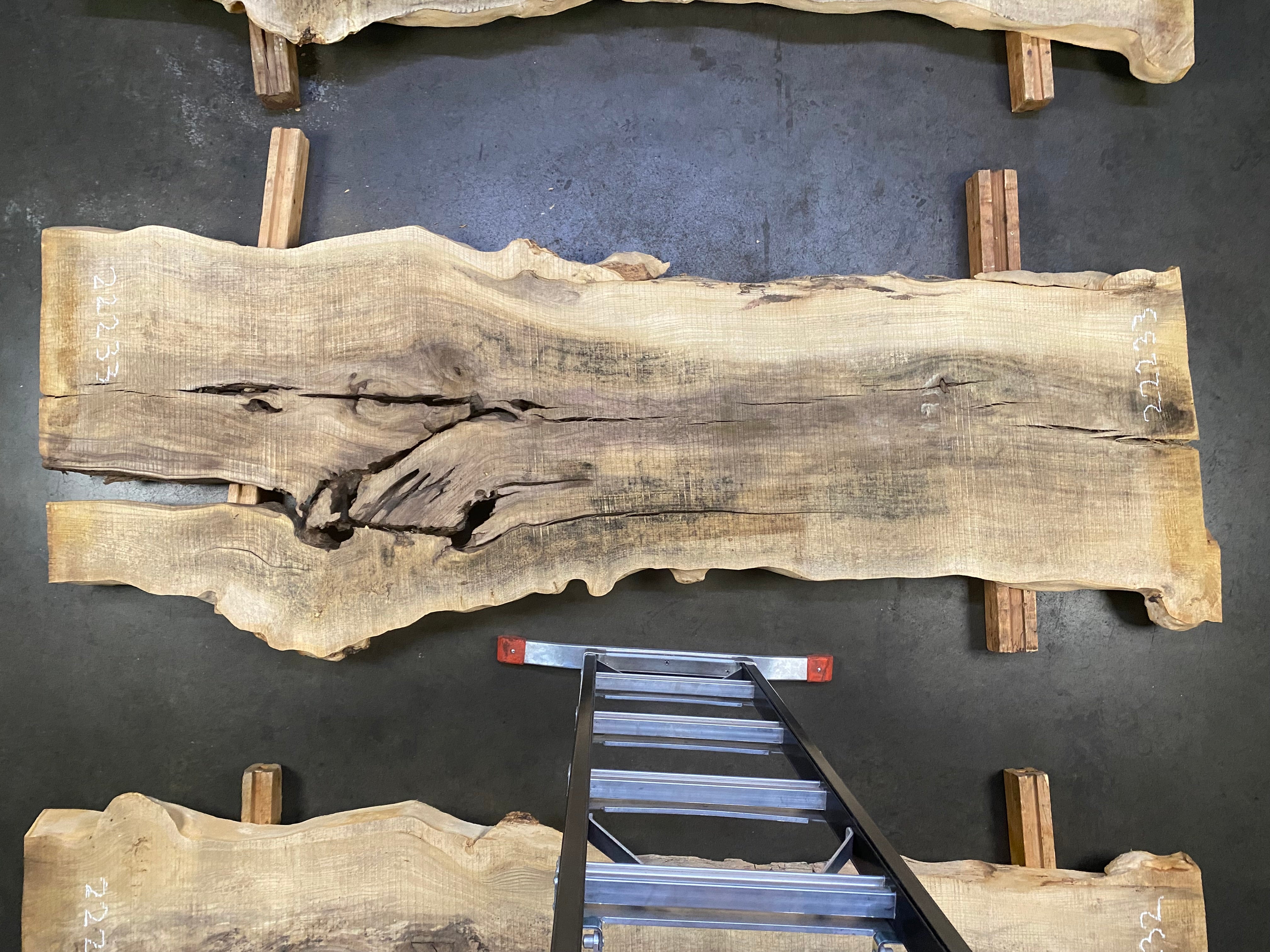 Rough sawn, large splits and surface voids, some discoloration (may mill out)