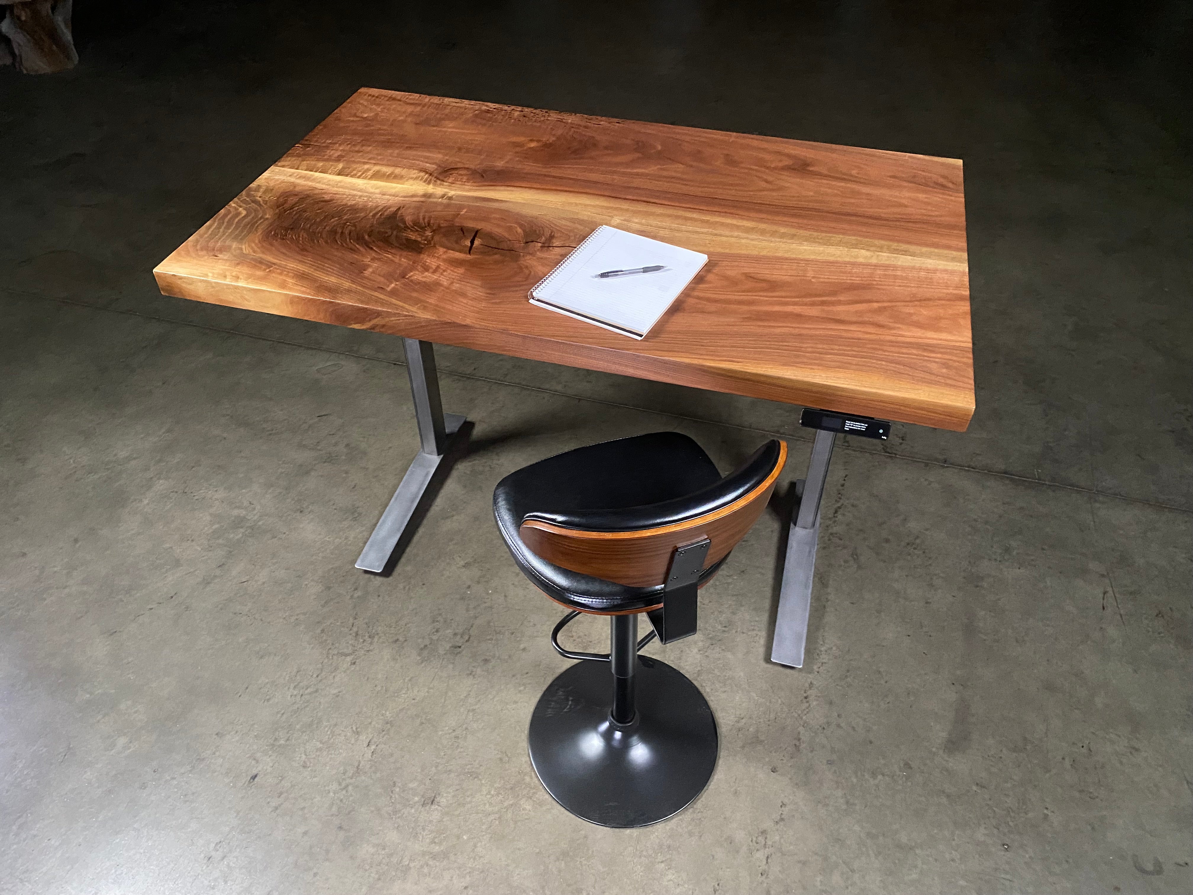 Height with base: Jarvis adjustable desk frame adjusts from 23.75" to 49.25" (add 2.25" for elm desktop)