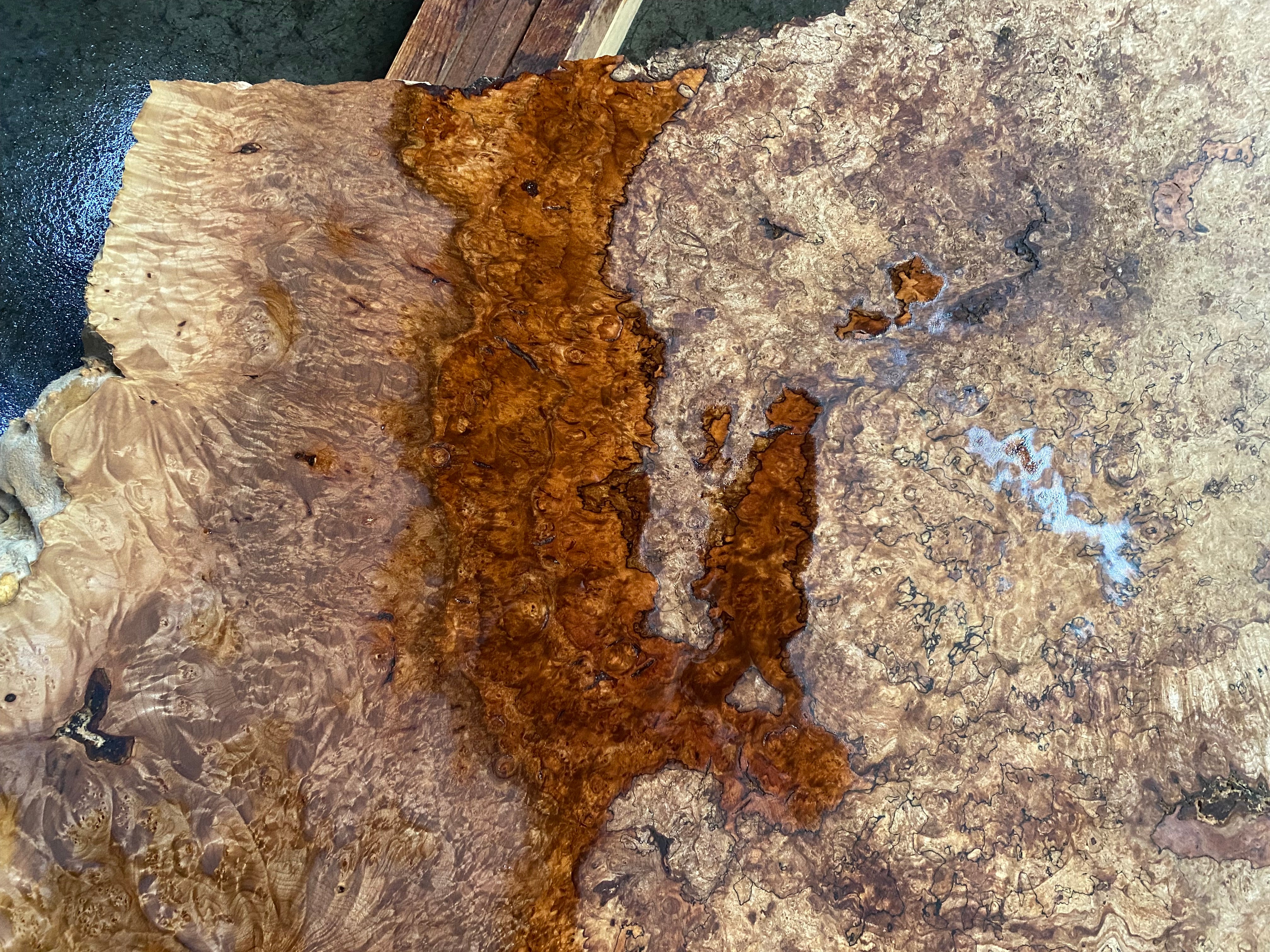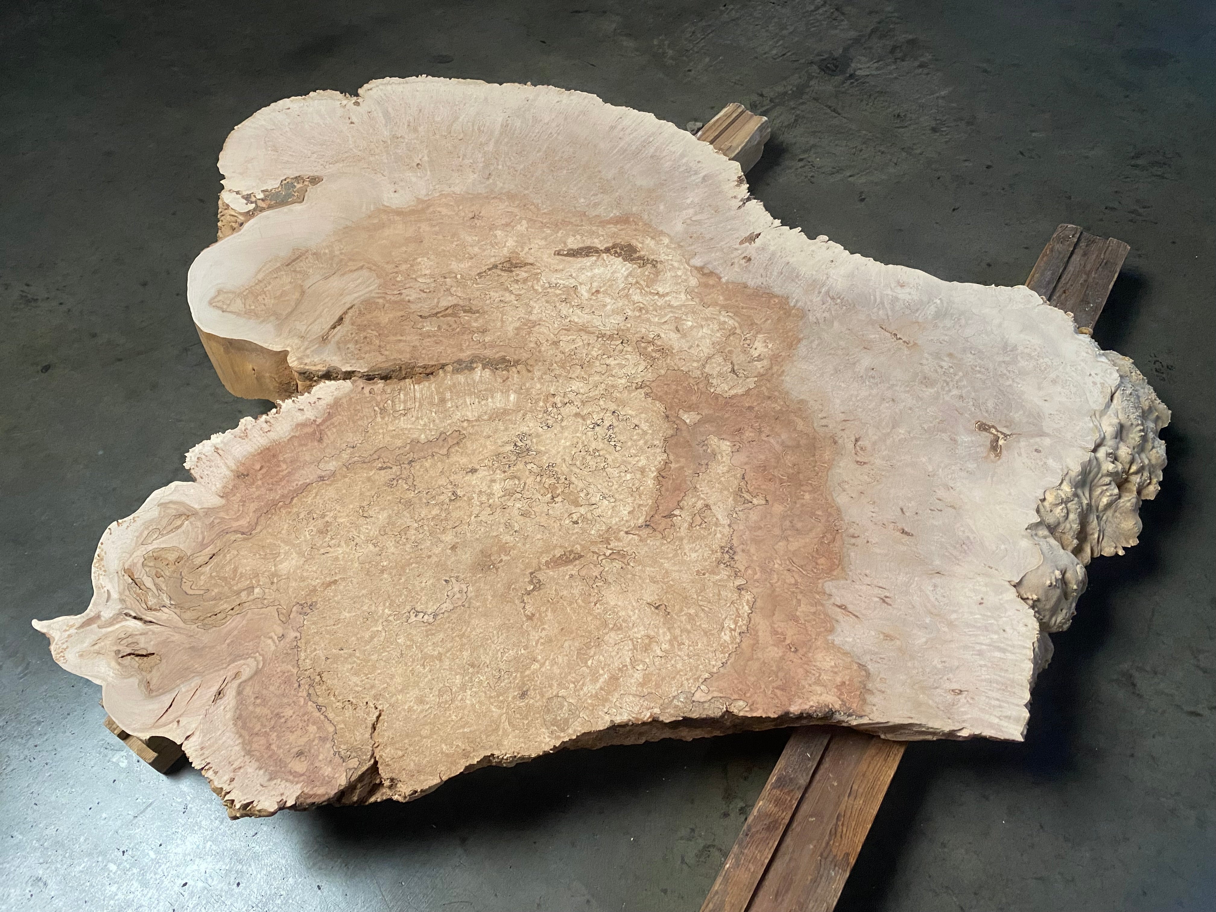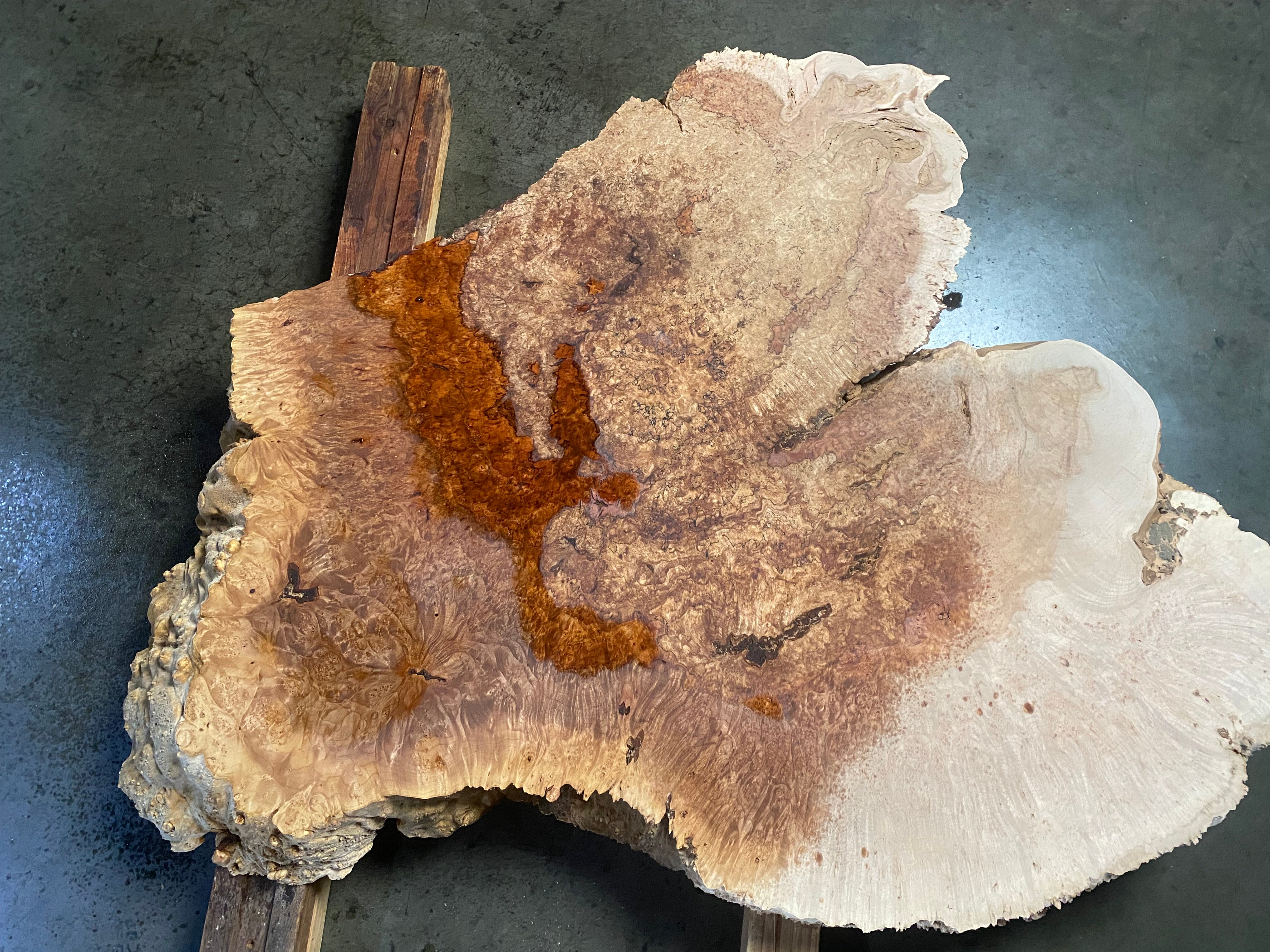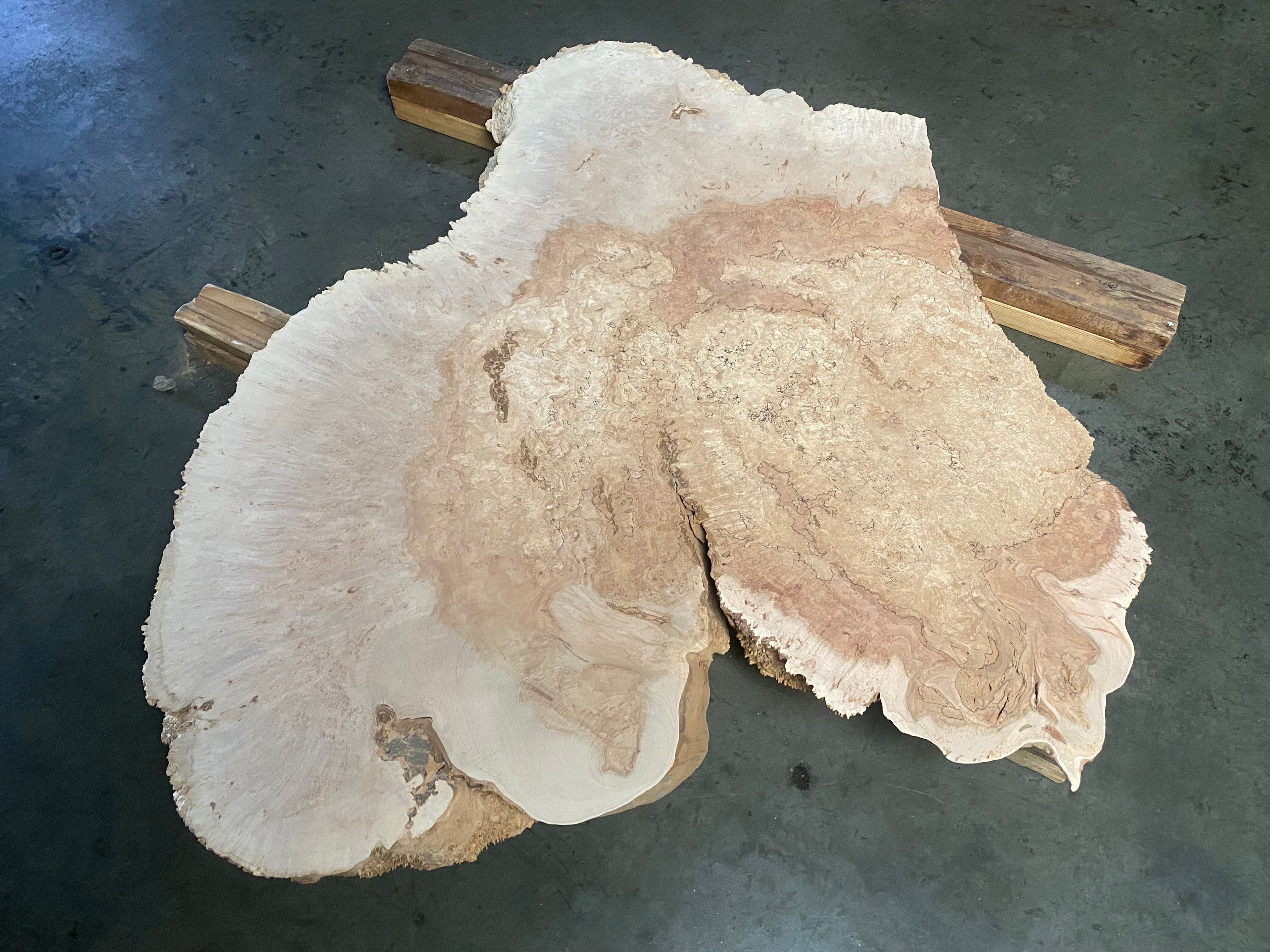 - Leveled and gauged, sanded one side, spalting, punky areas, figured