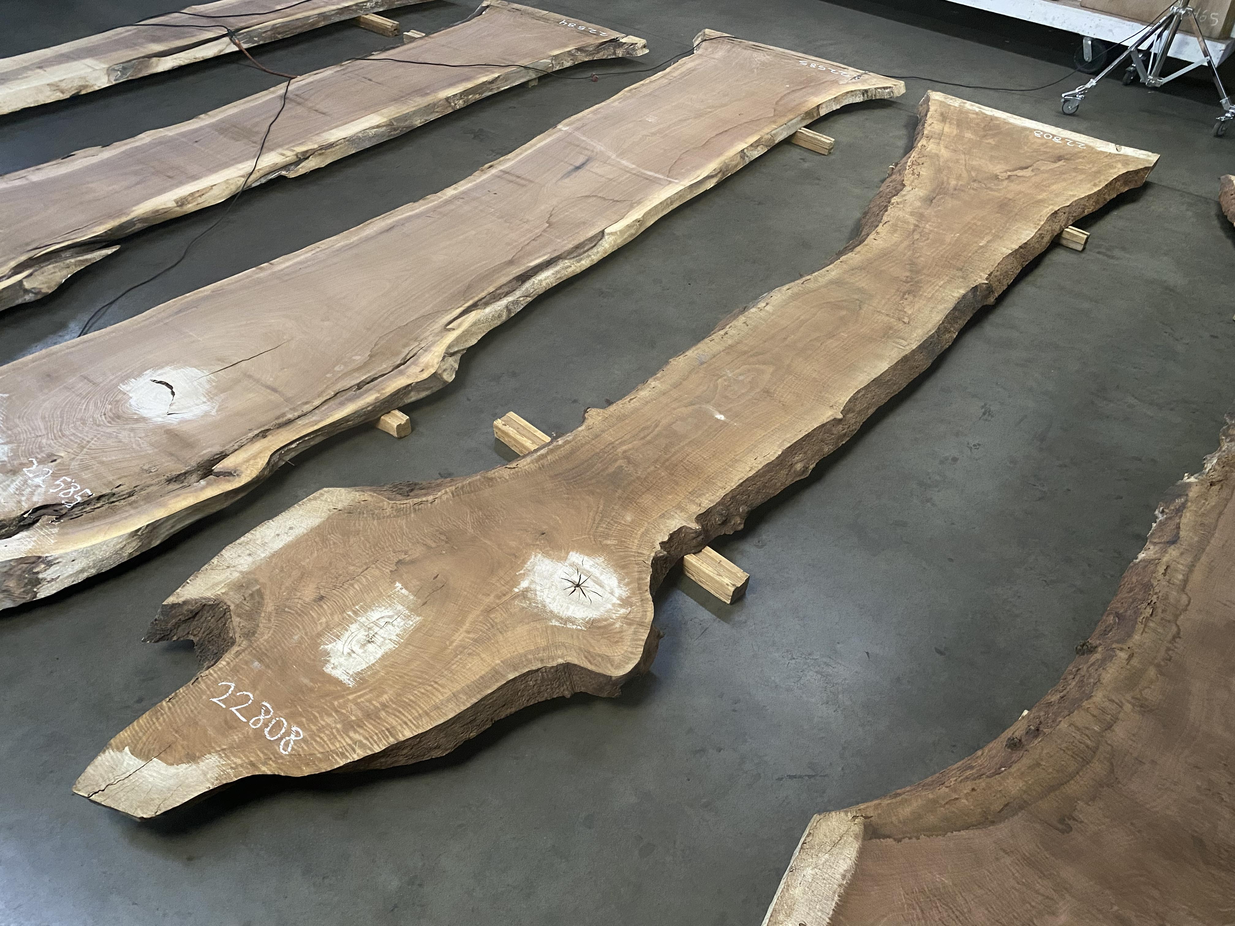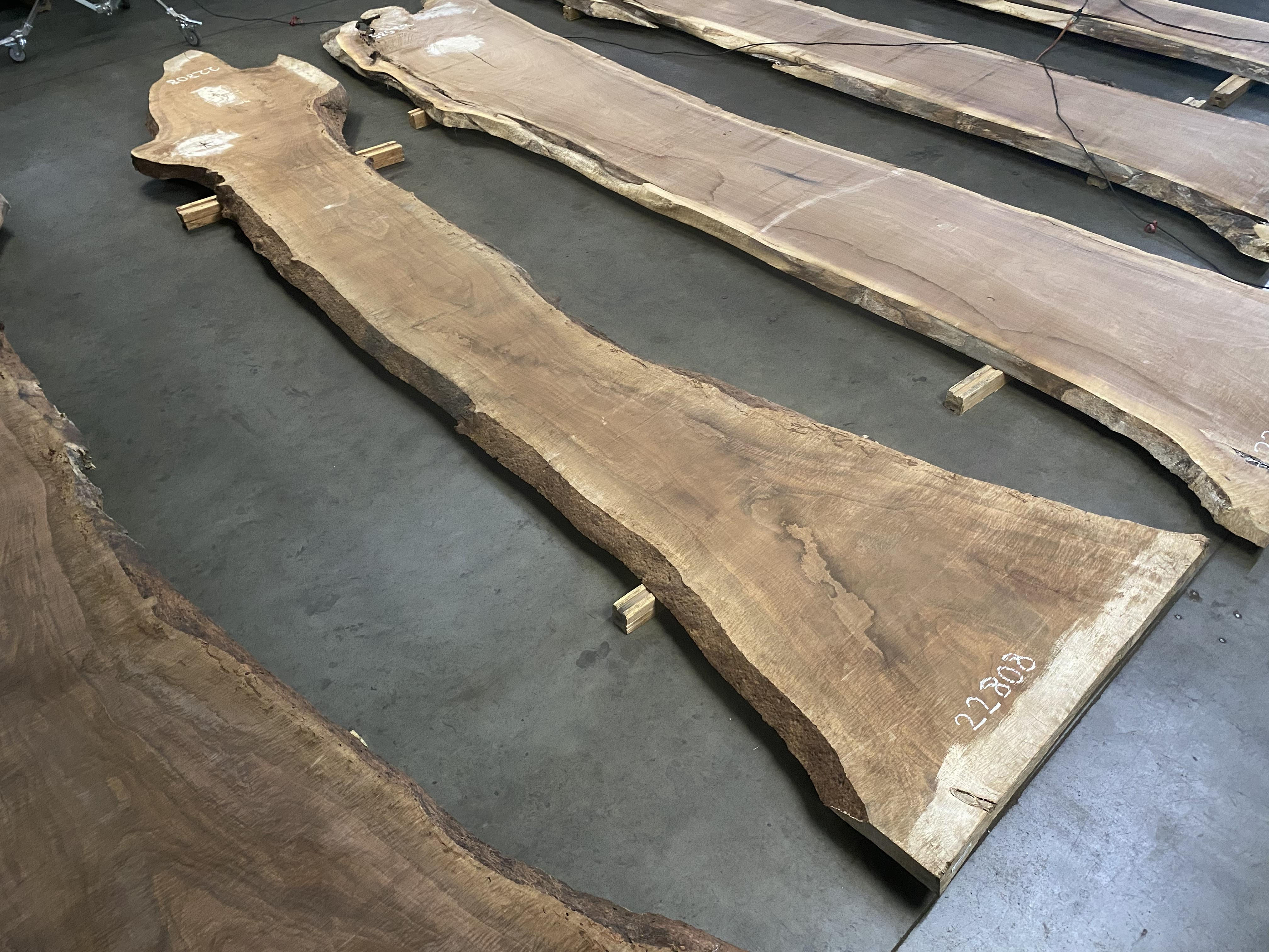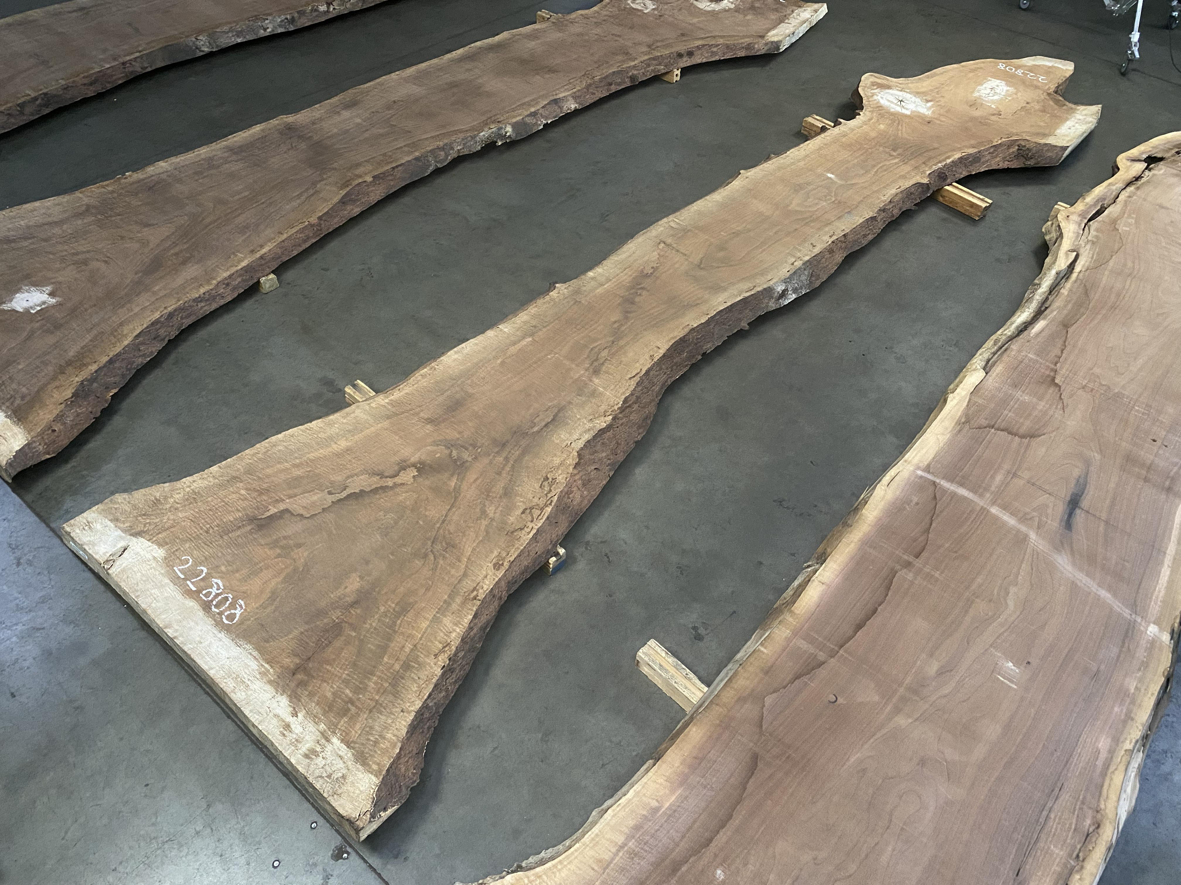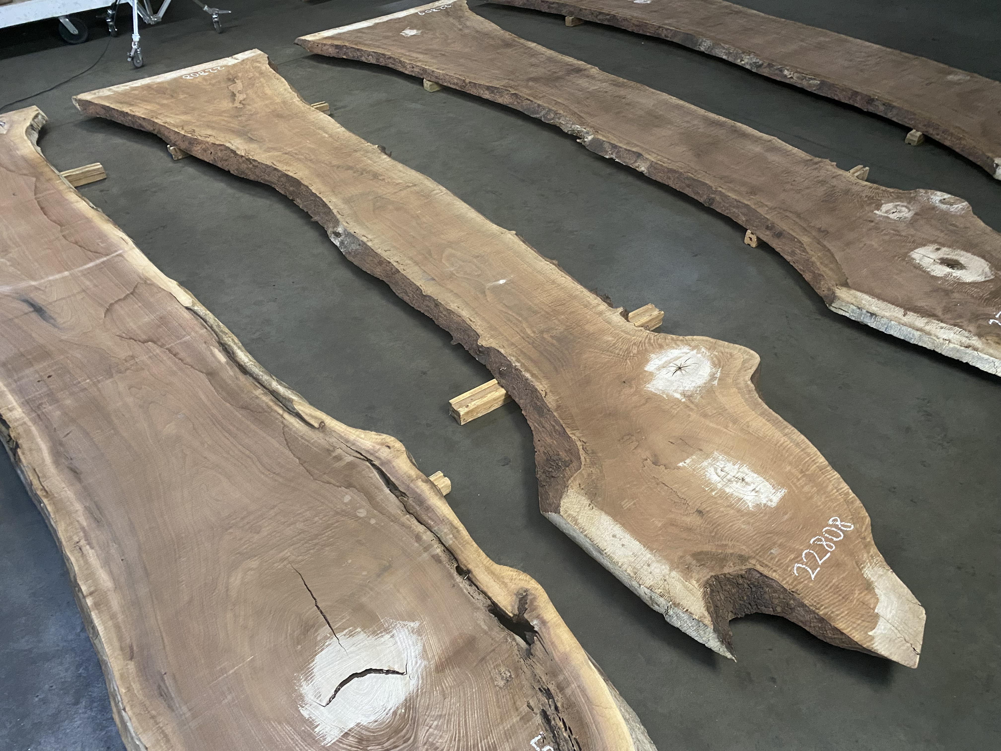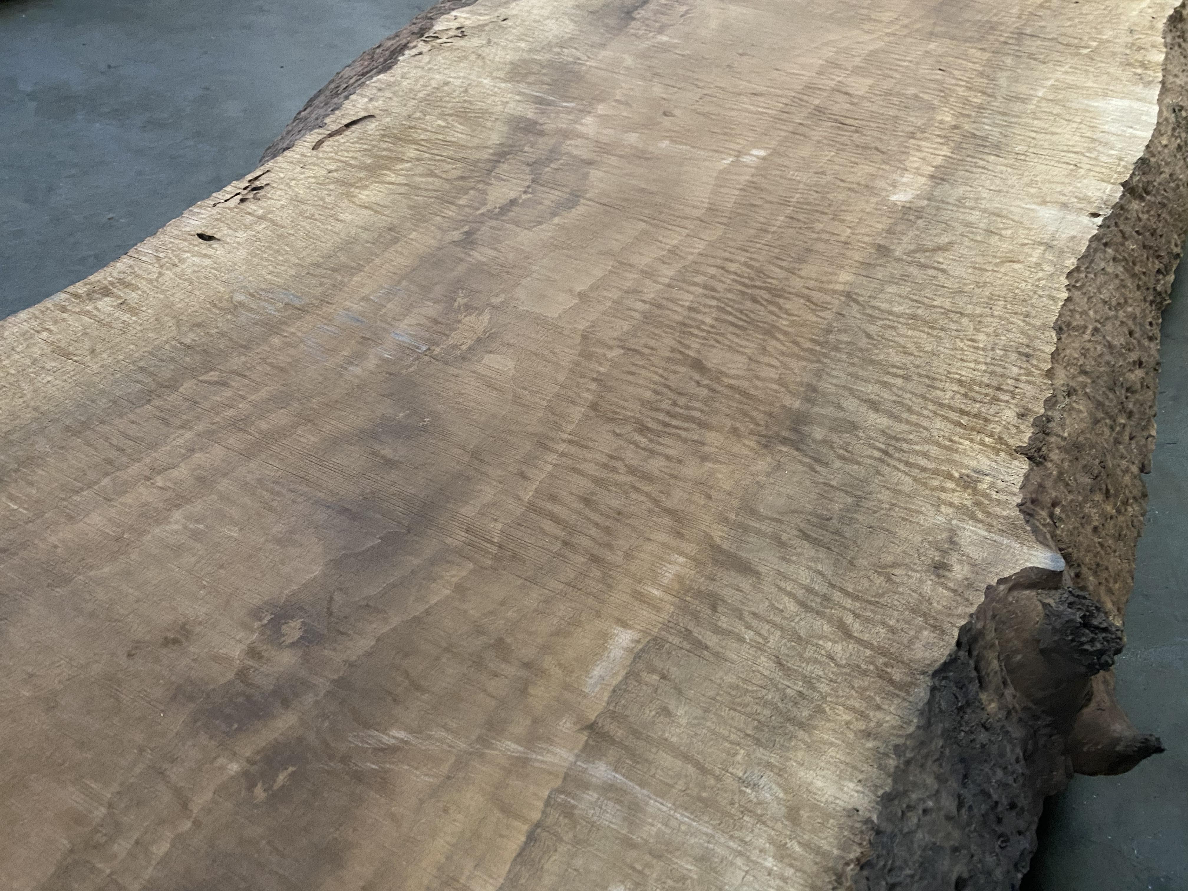 ● Rough sawn, widths measured from bottom face, bug holes, knots, high figure