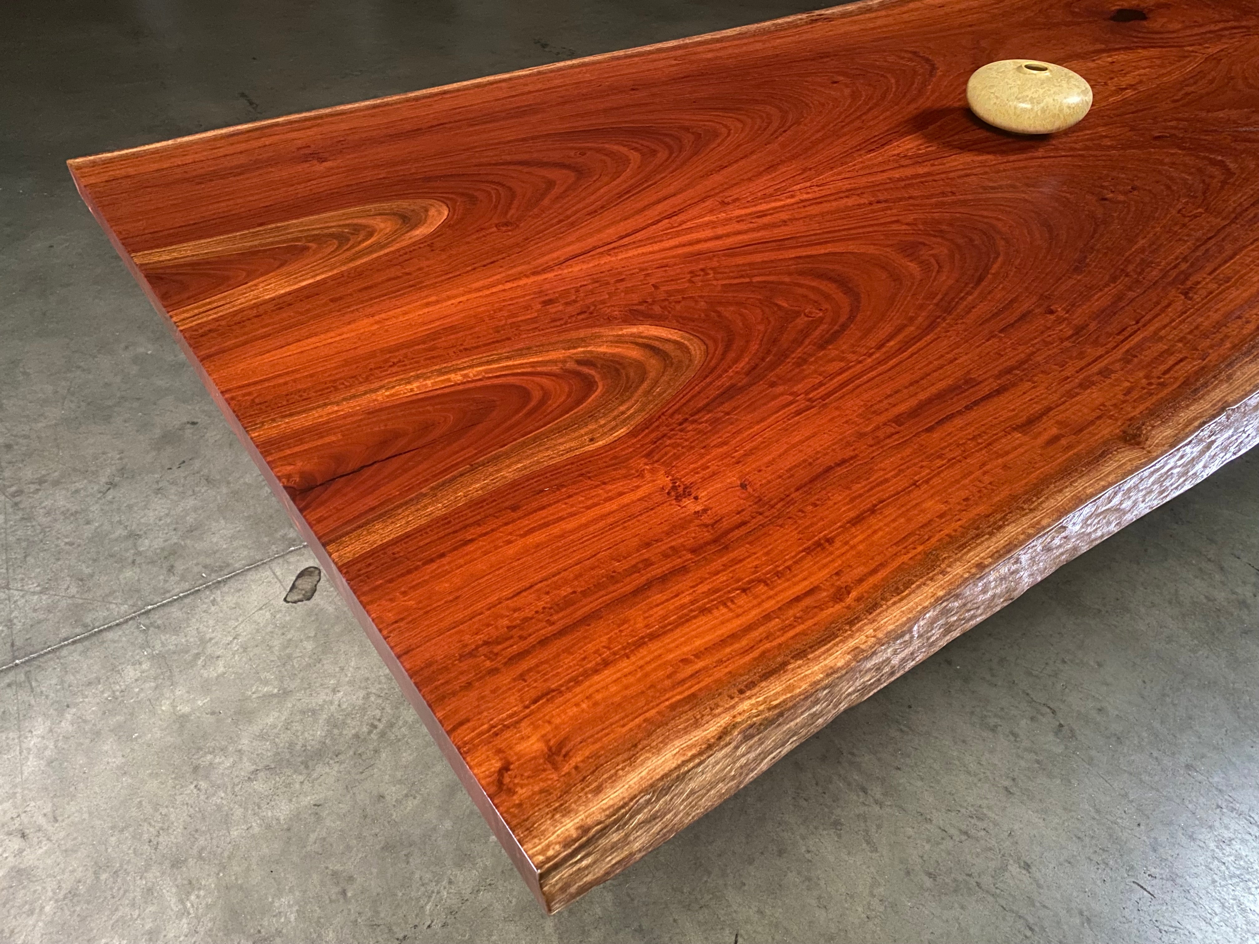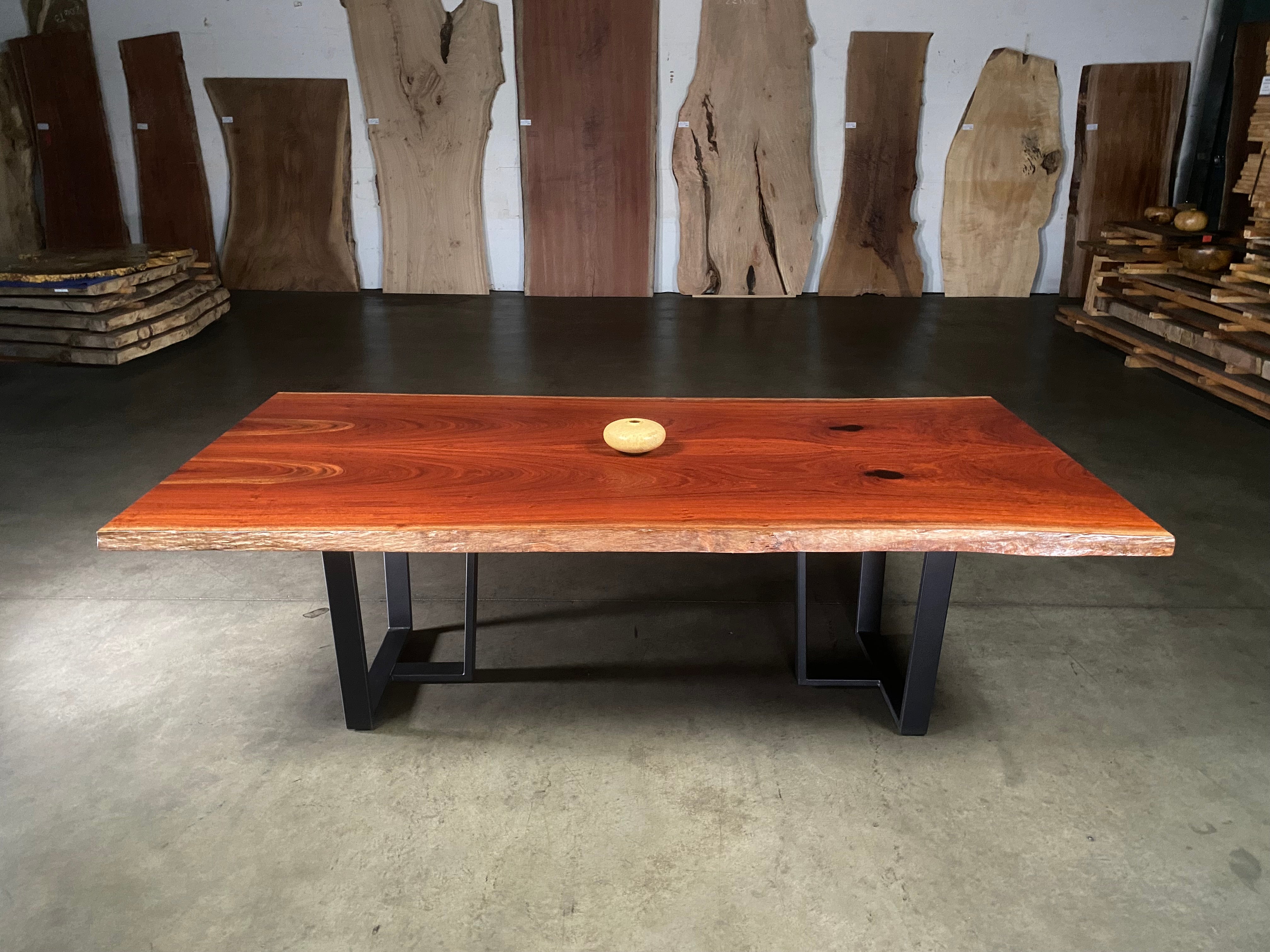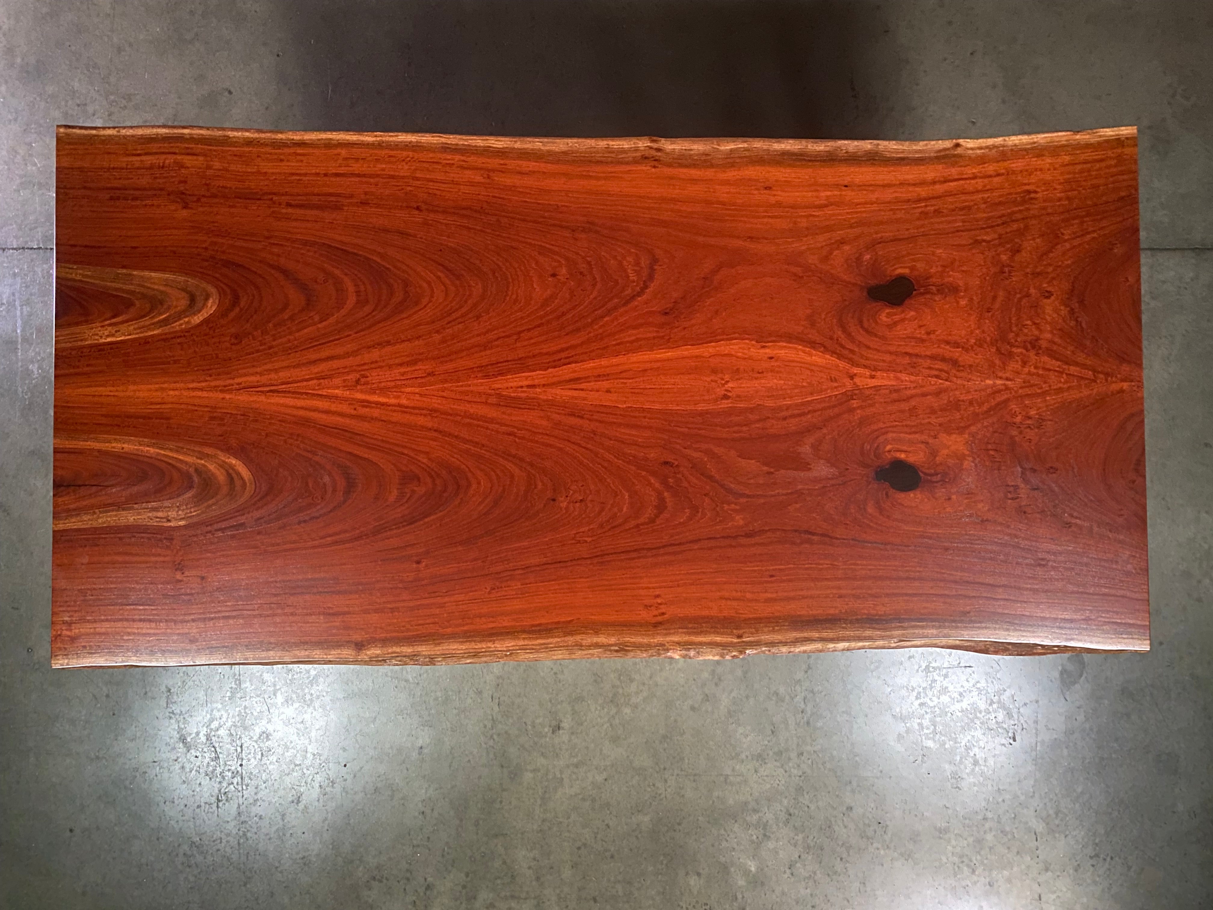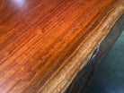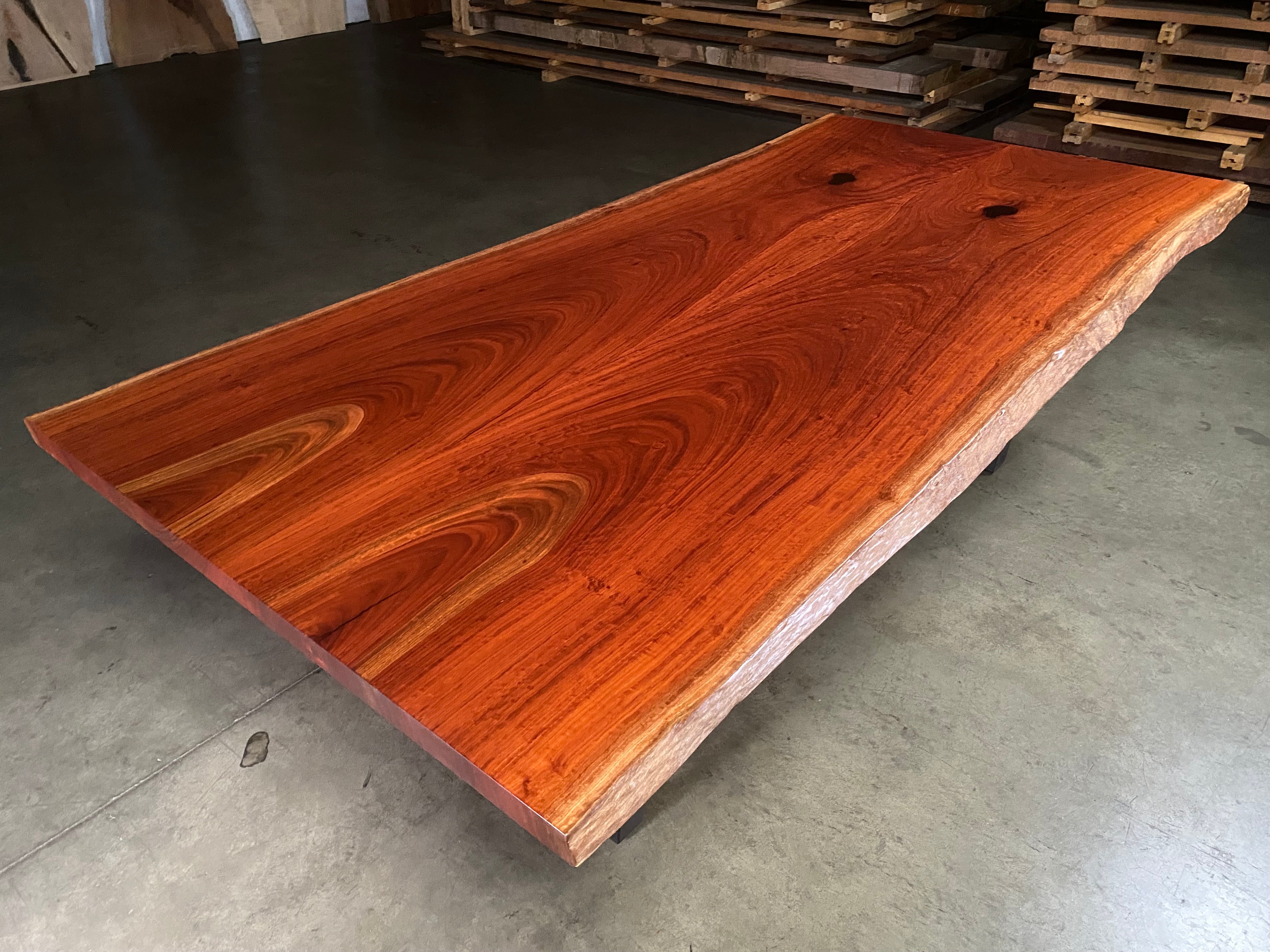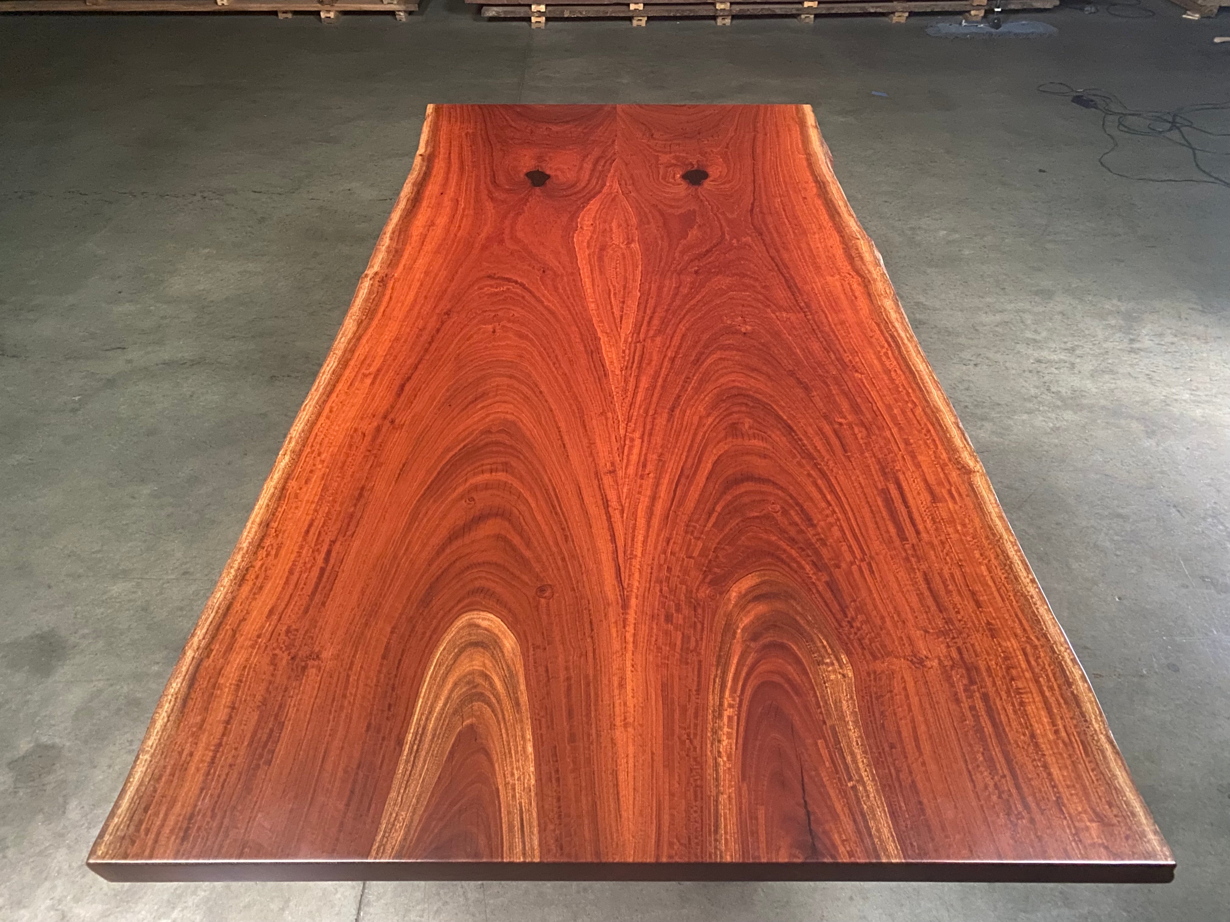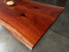 - Description: Bookmatched pair of slabs. Square cut ends with natural live edges. Cathedral and cat's paw figure with filled knots and sapwood contrast.