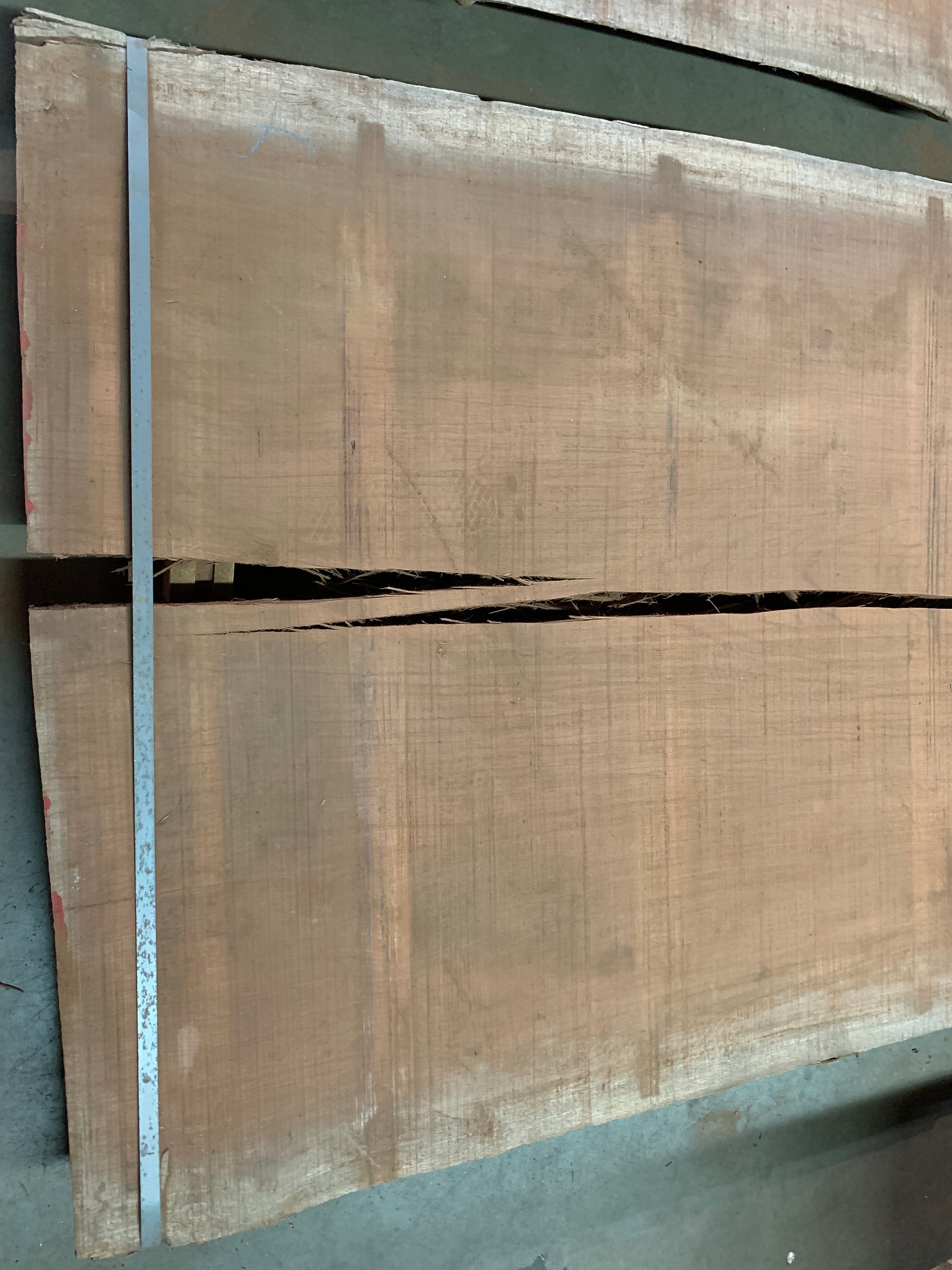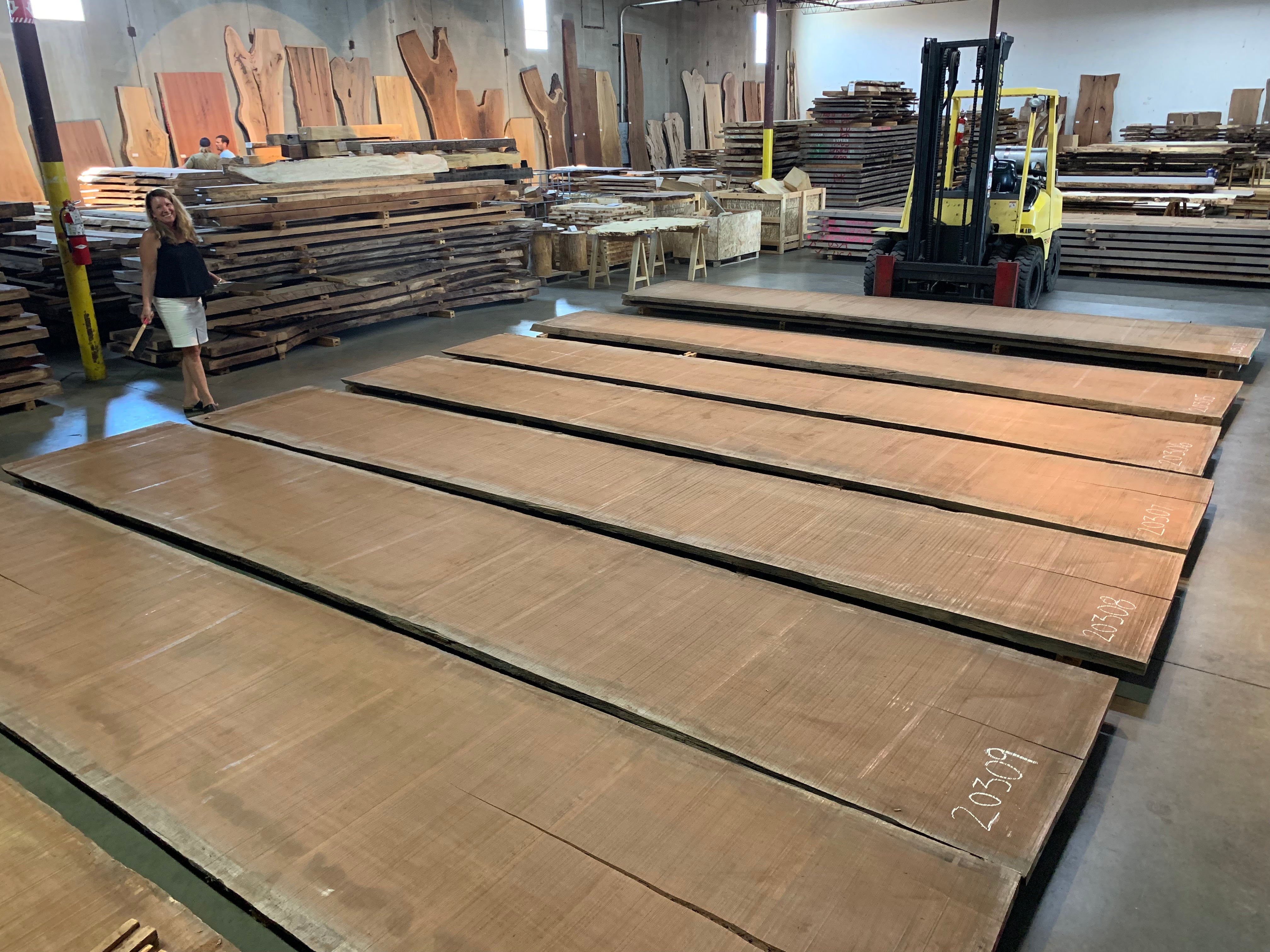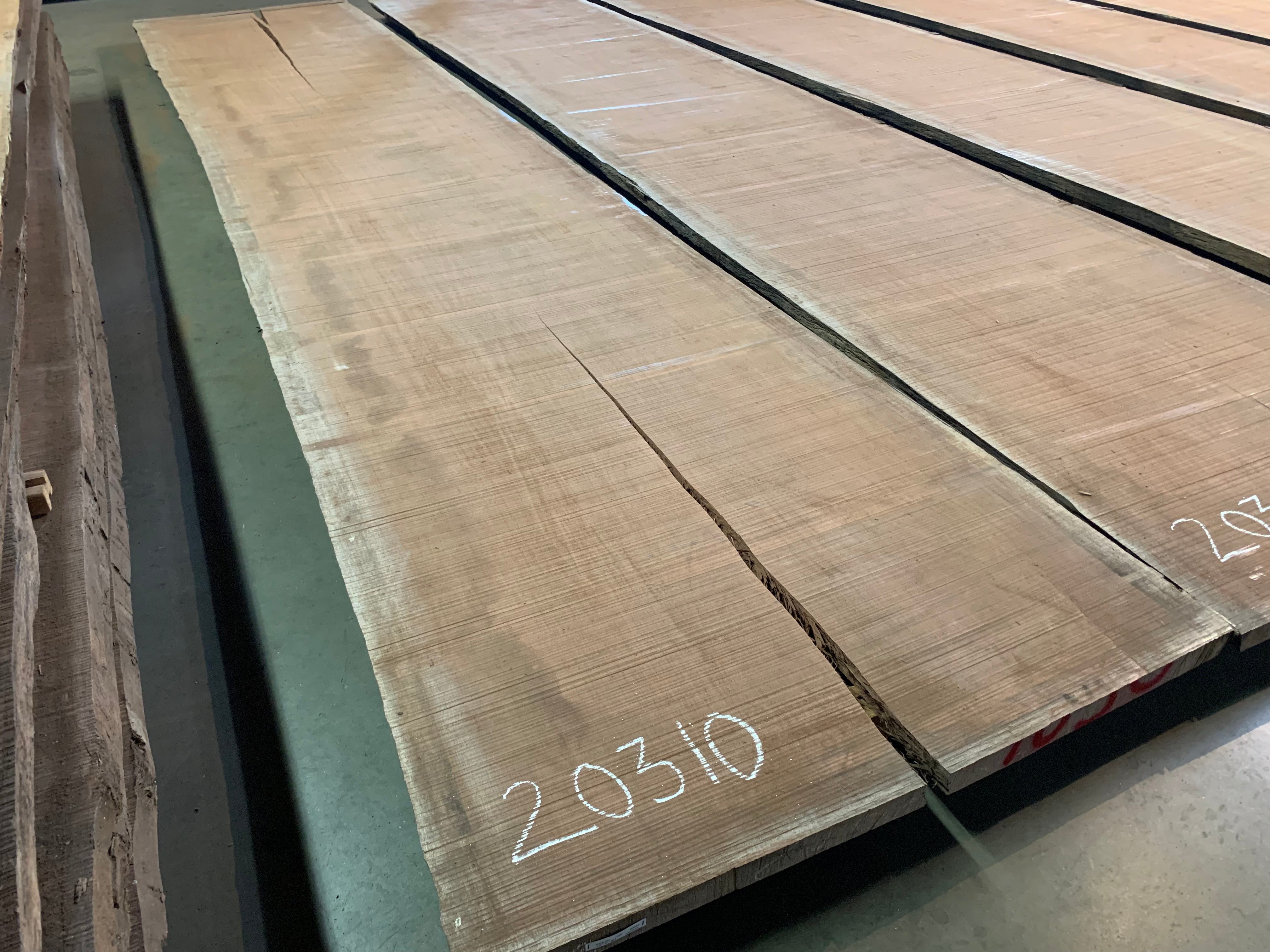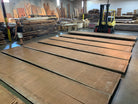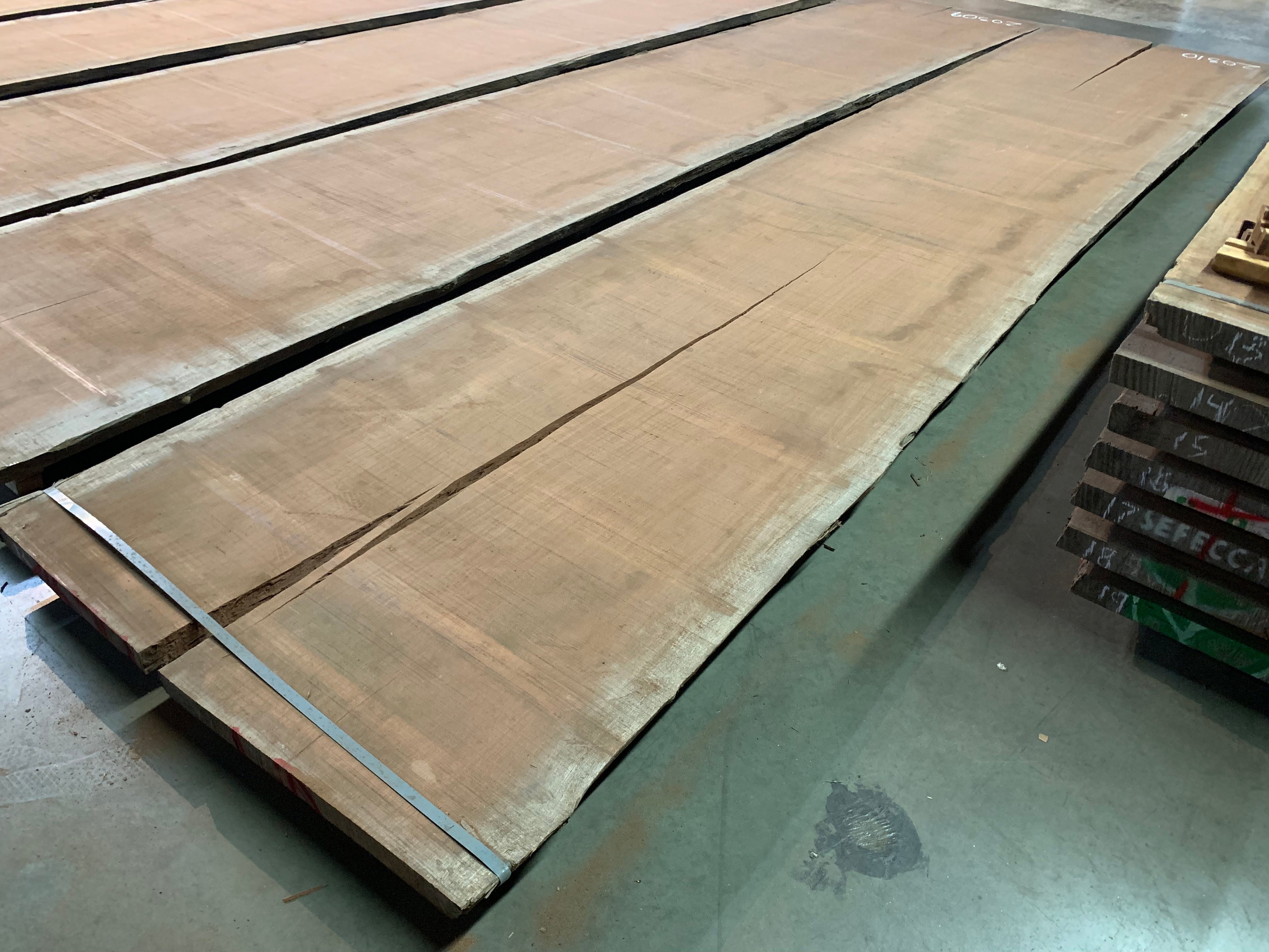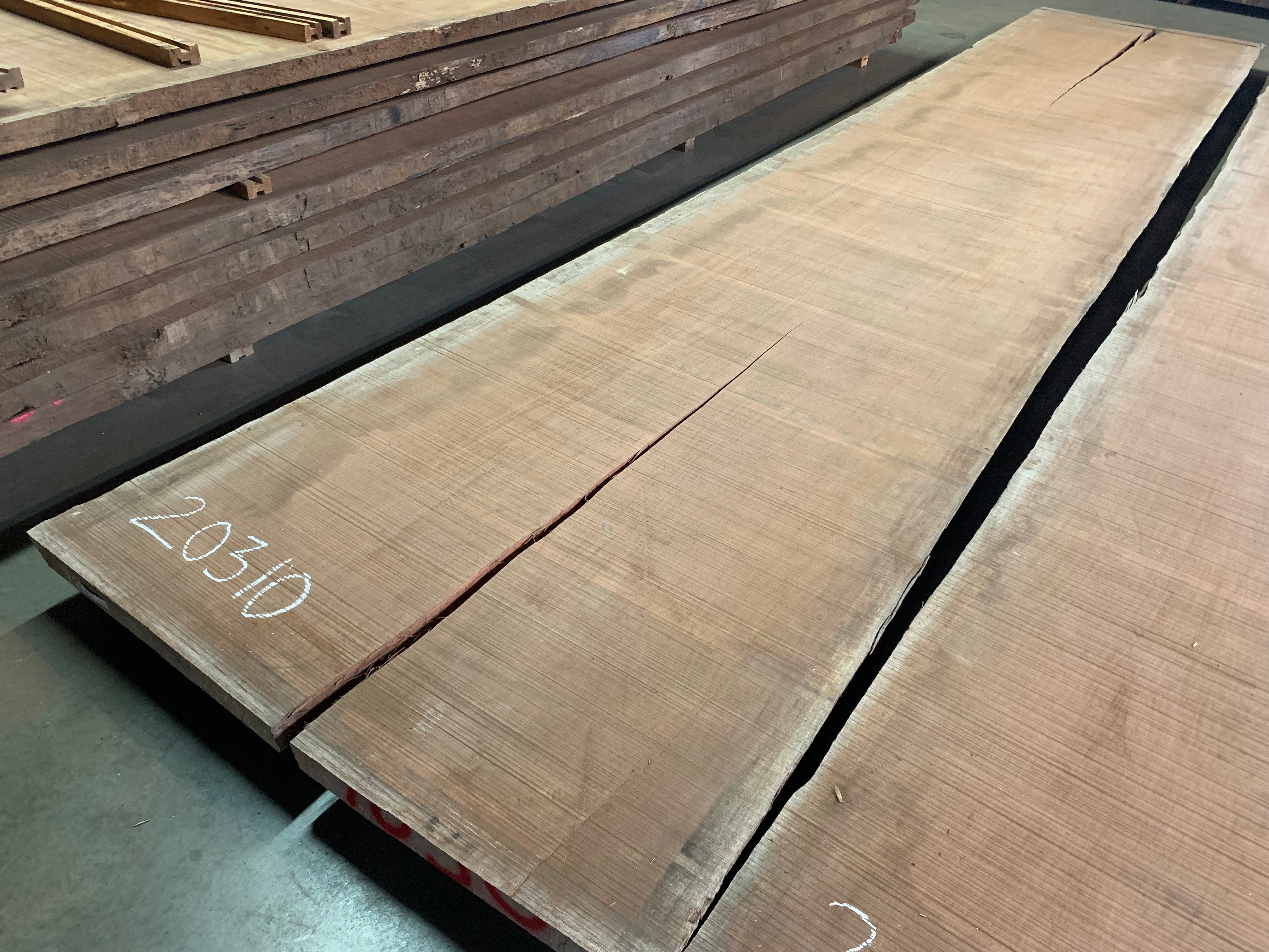 This Bubinga slab is 244" long x 49" - 52" wide x 2" 1/8 thick and is 184 board feet. It has a check of 46" on one end and 135" on the other. We are willing to custom cut to length for your project specifications. Kiln dry.